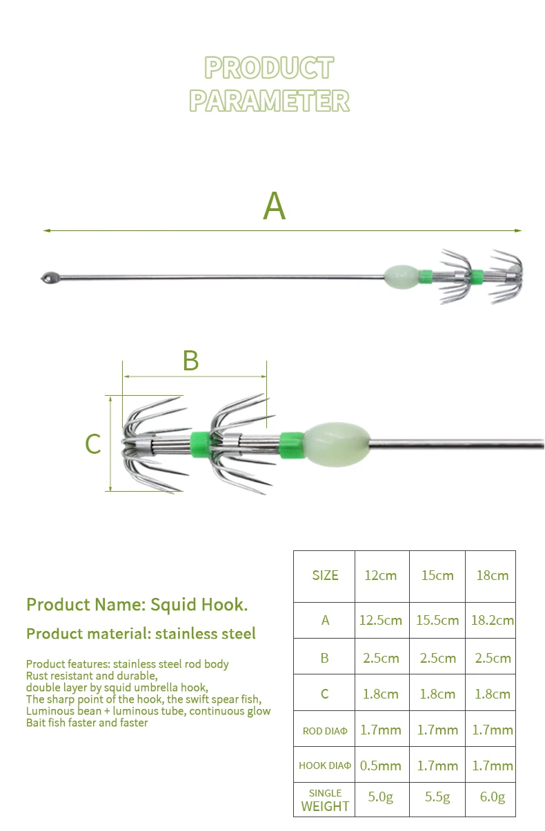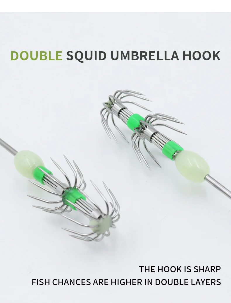 1. Double umbrella hooks, sharp hook point, rapid stabbing fish, double hook is not easy to unhooked