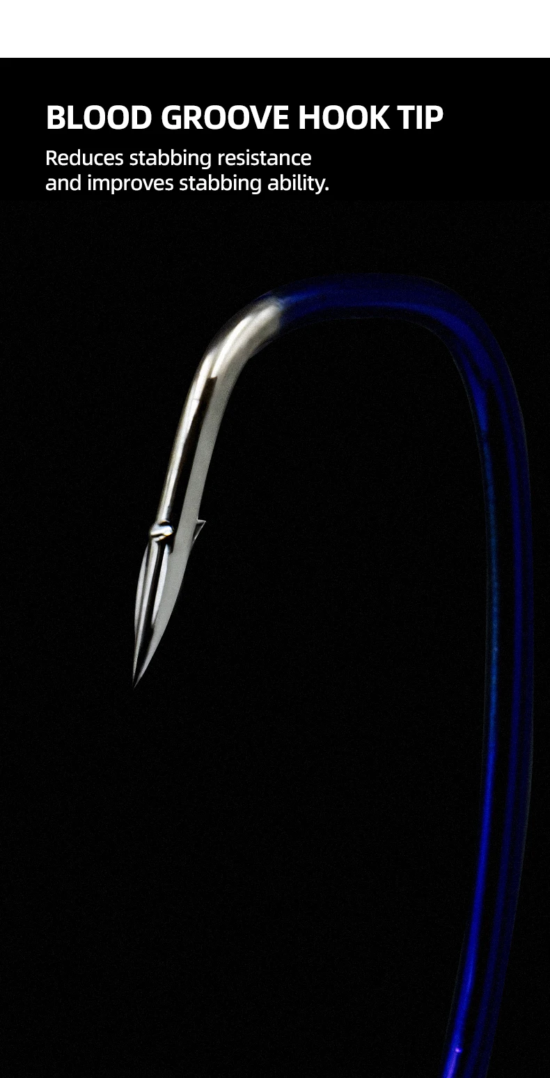 1. Blood groove hook point, can reduce the resistance to stabbing fish and improve the ability to stab fish.