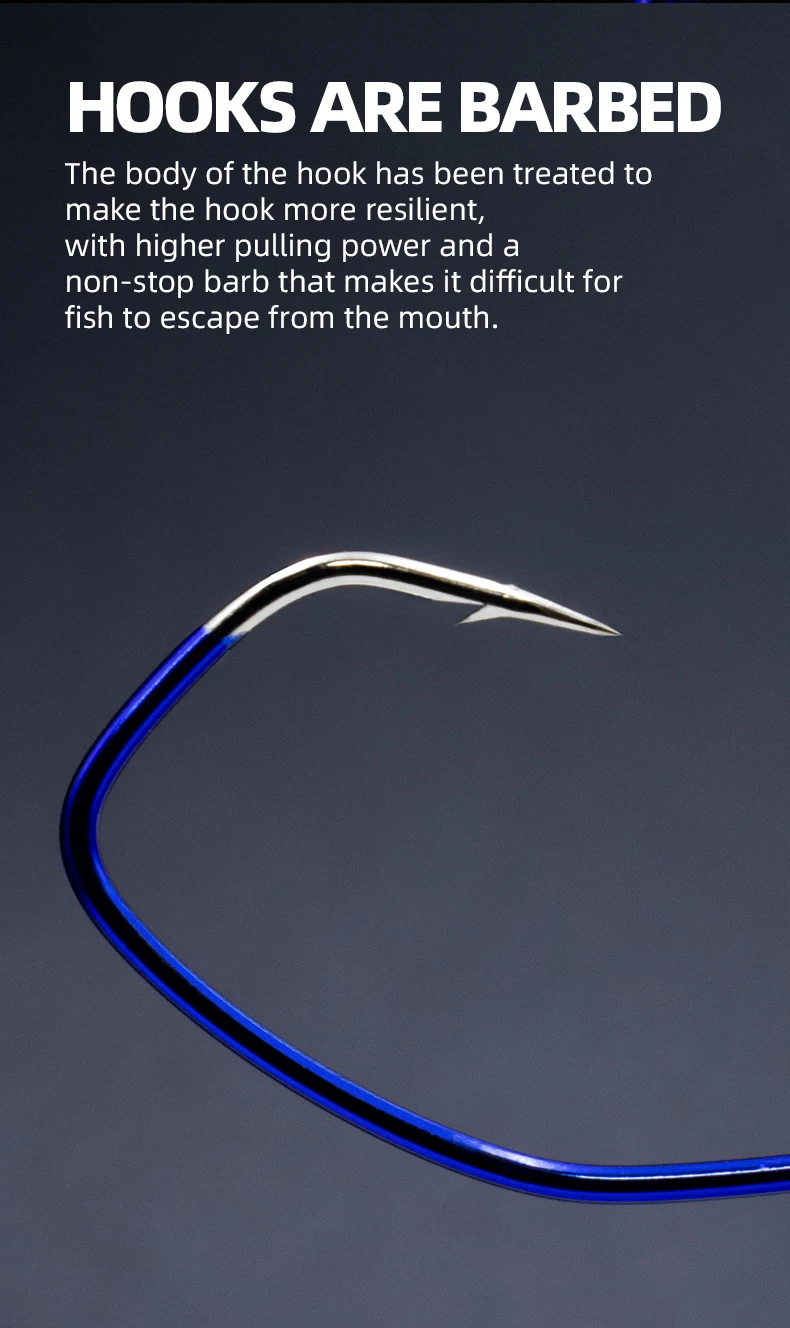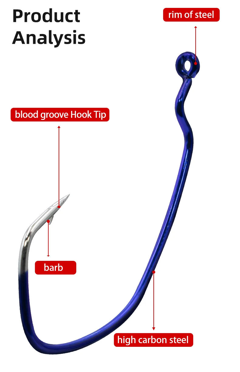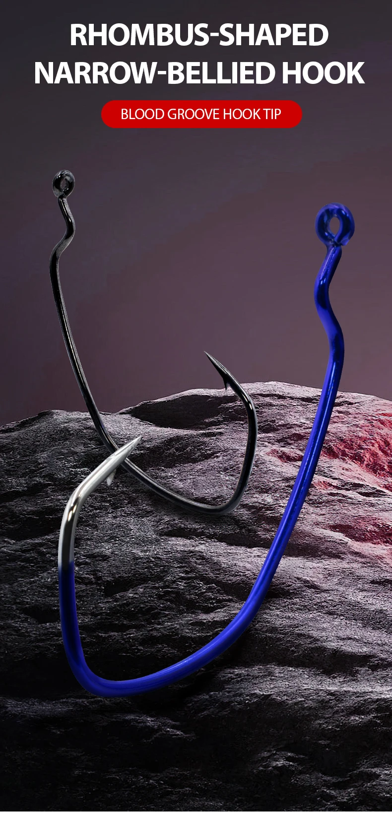 2.No resistance to barbs Flat punch hook body, blood groove hook tip hook body after flat punch treatment, so that the hook's toughness is stronger, higher tensile strength, no resistance to barbs to make the fish entrance difficult to escape