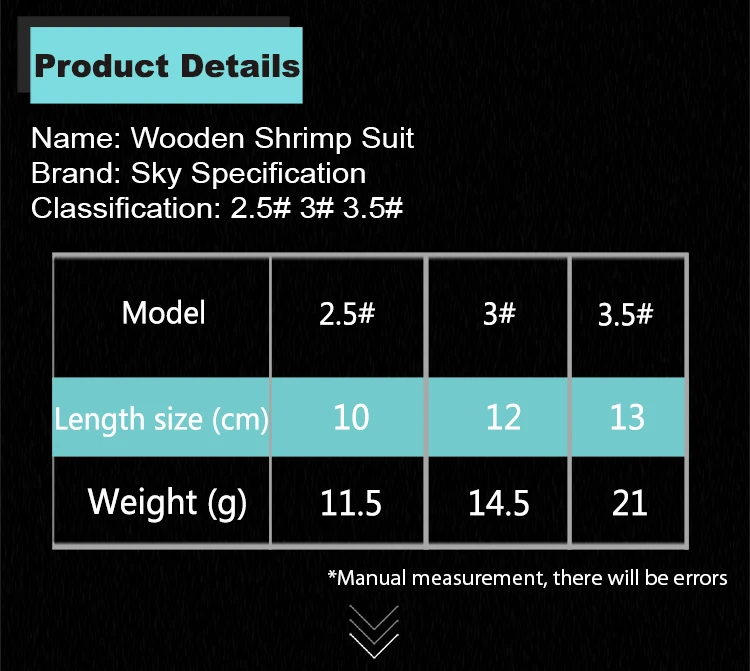 The colour of the wooden shrimp varies between sizes 3.0 and 3.5, depending on the picture.