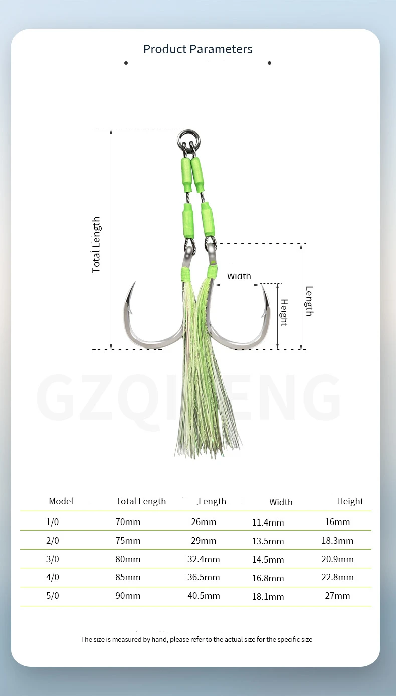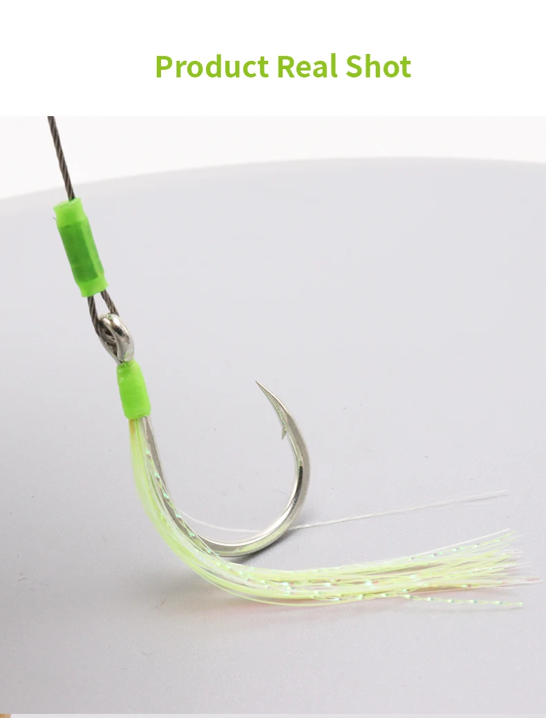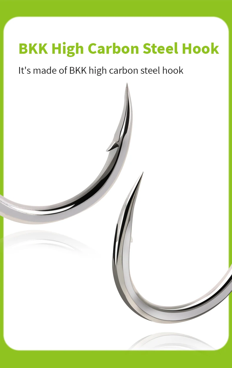 1. Anzuelos JIG reforzados con acero de alto carbono con punta de gancho afilada, sin miedo a los peces grandes.