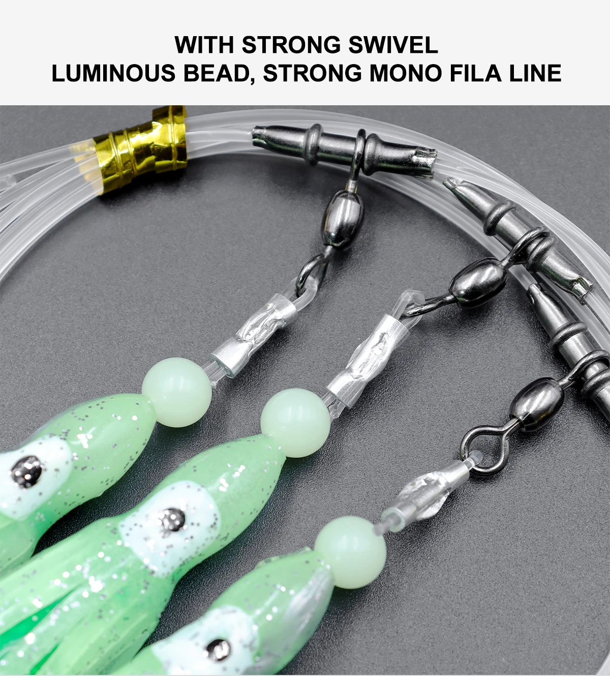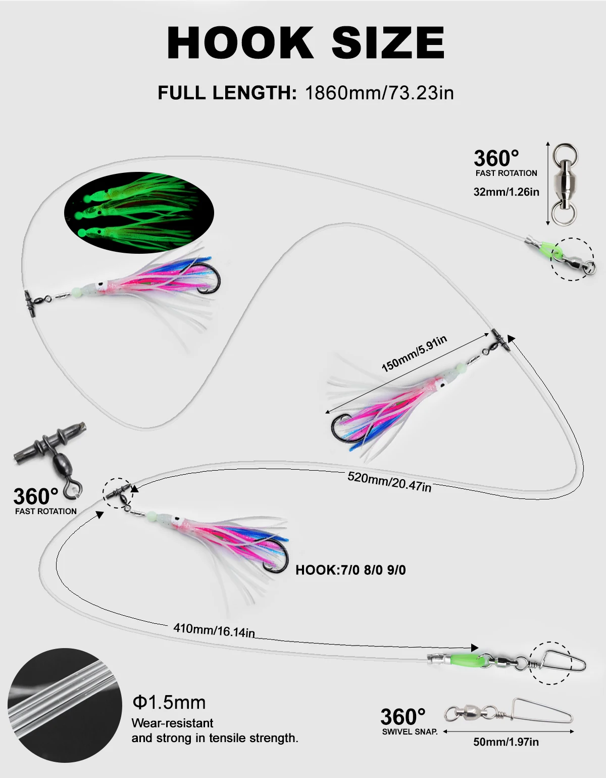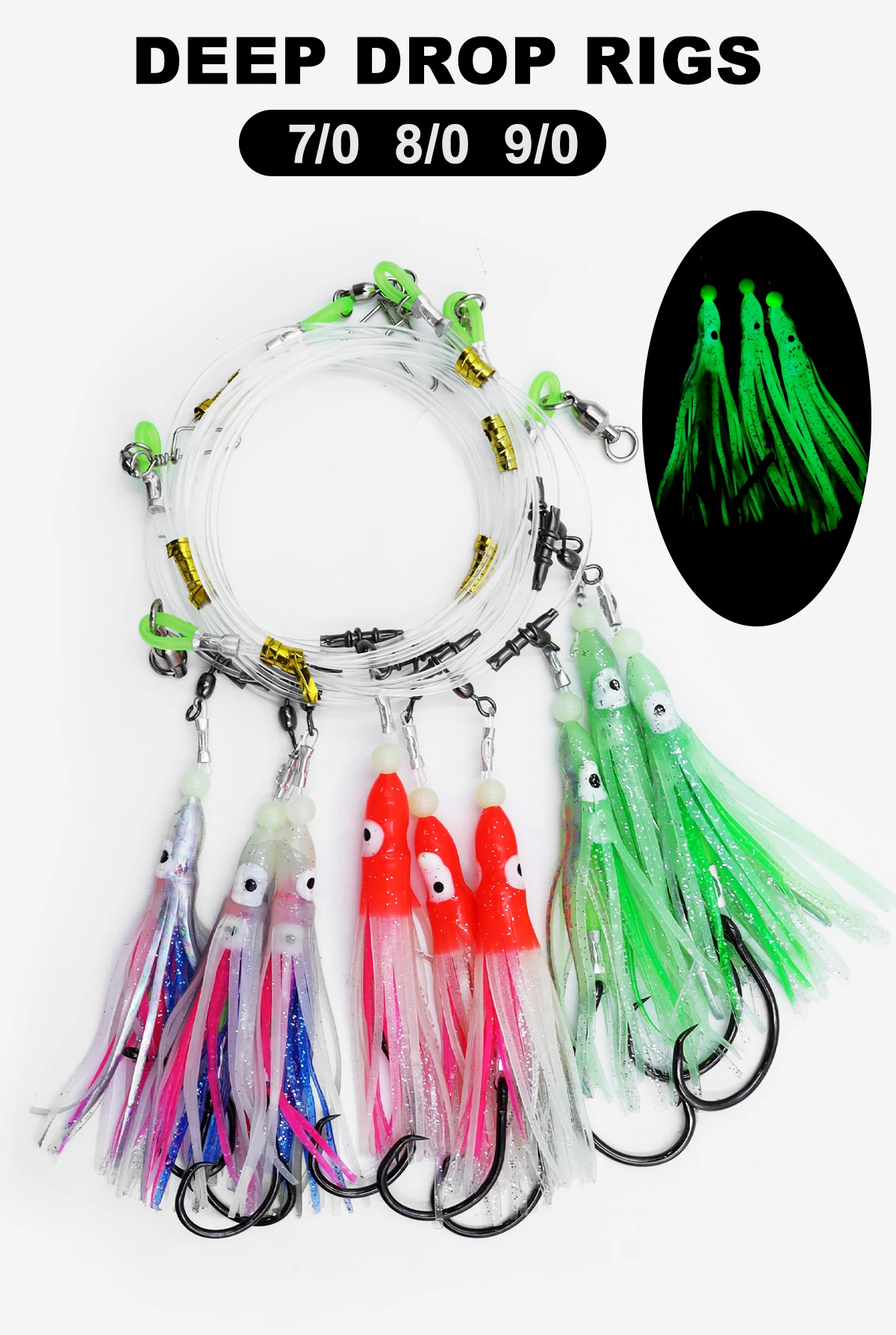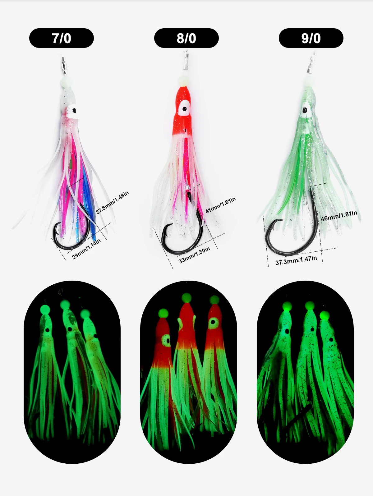ZYZ-anzuelos de cuerda de pesca en el mar, cebo falso de pulpo luminoso con círculo negro, para agua salada, 7/0 #8/0 #9/0 #