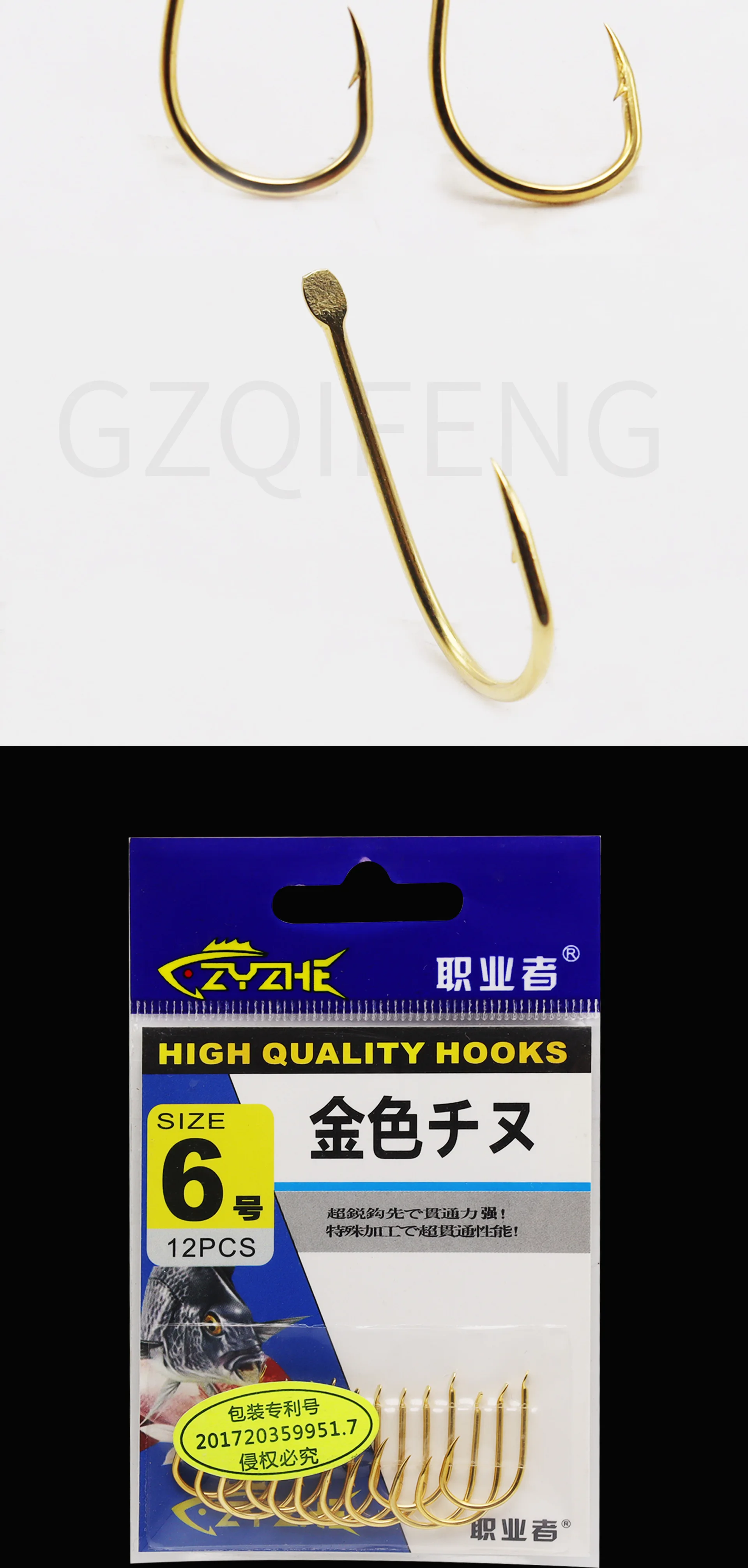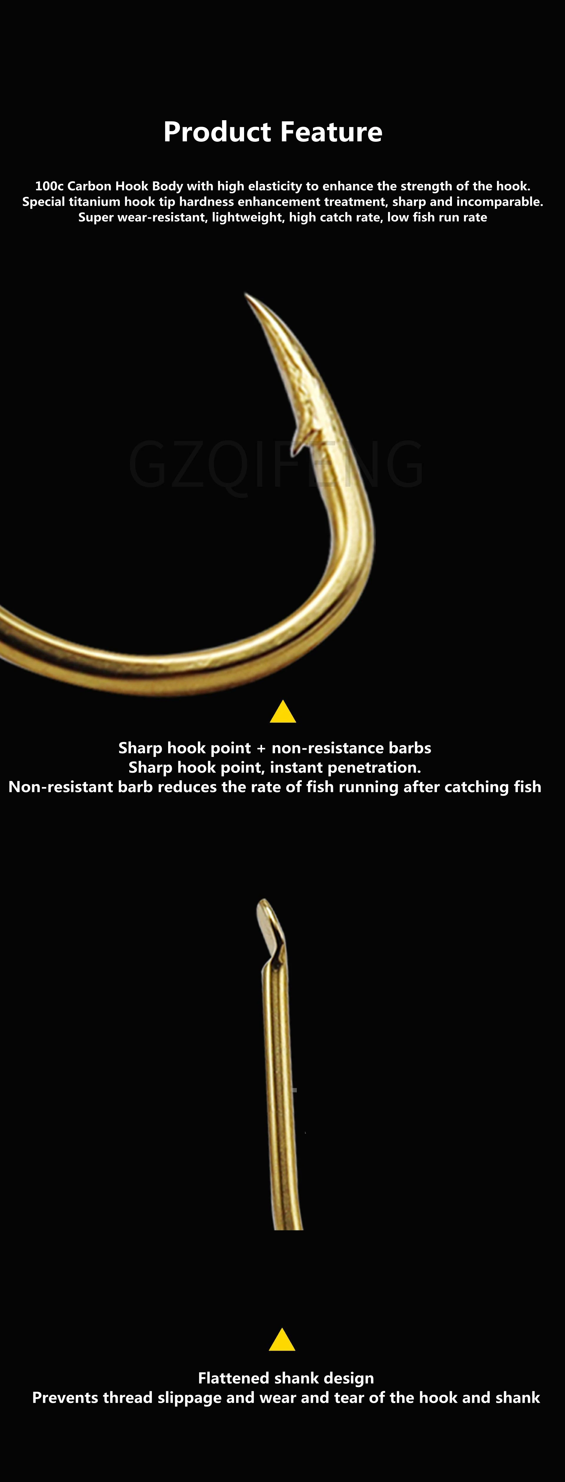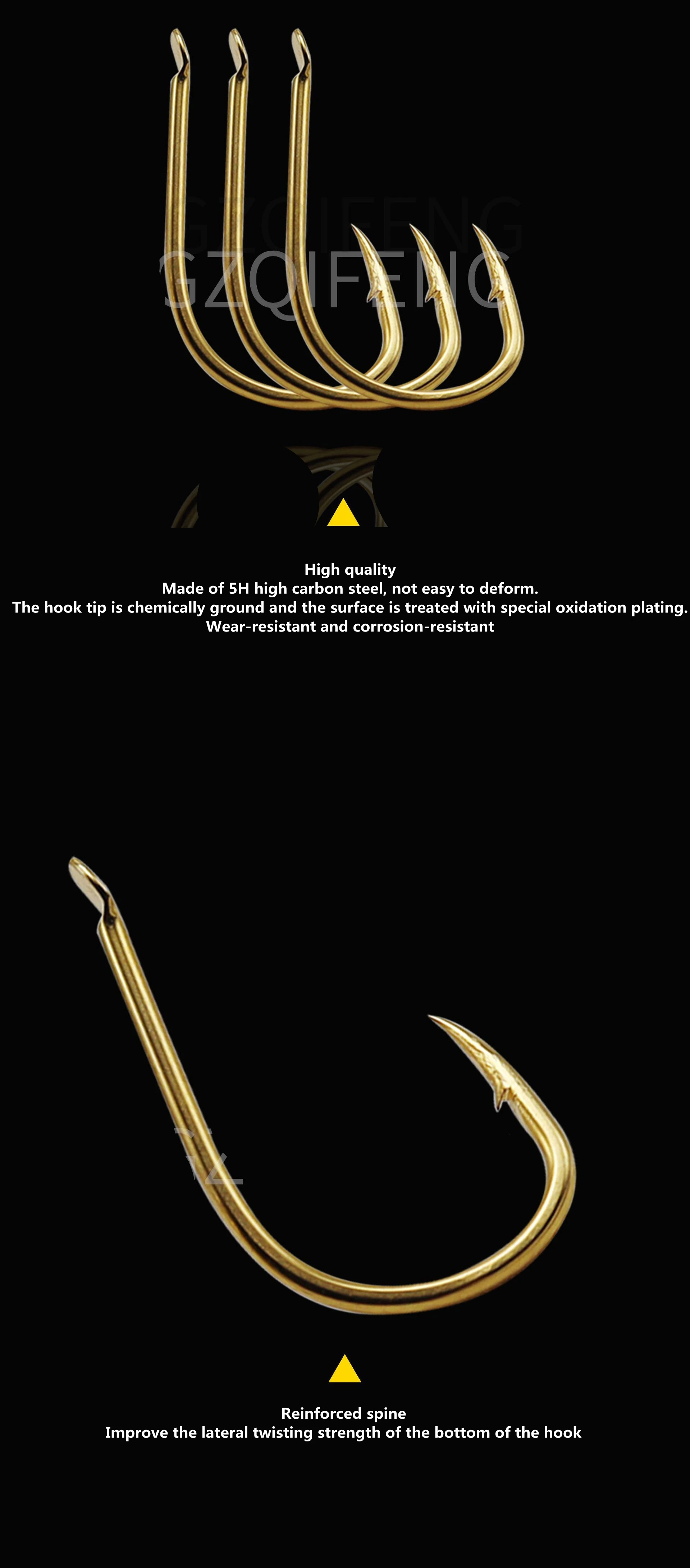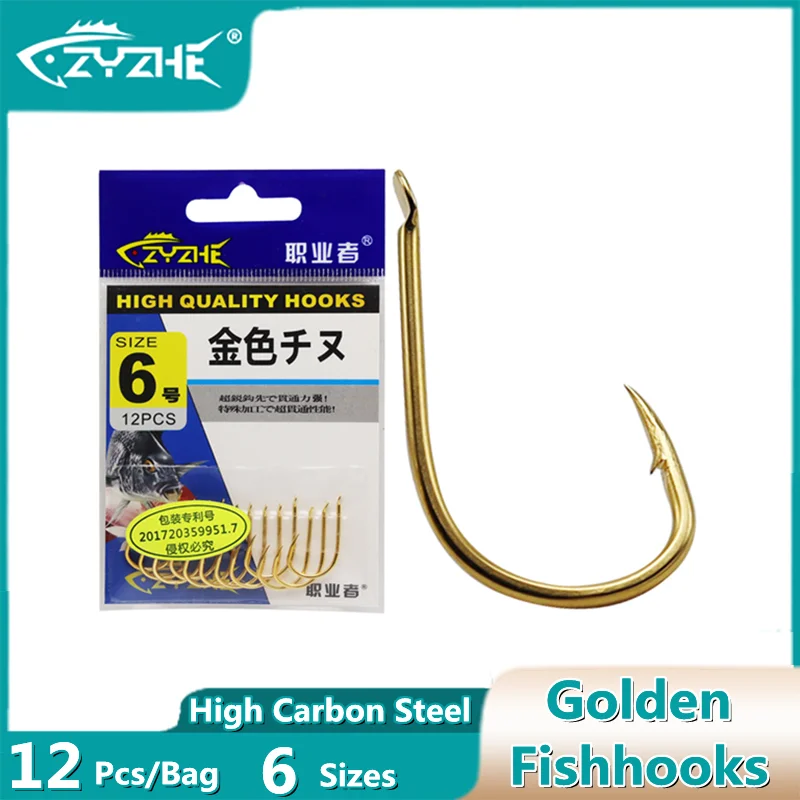 ZYZ anzuelos dorados de acero con alto contenido de carbono, aparejos de pesca afilados con púas, revestimiento anticorrosión, 12 unids/lote por bolsa, 6 tamaños