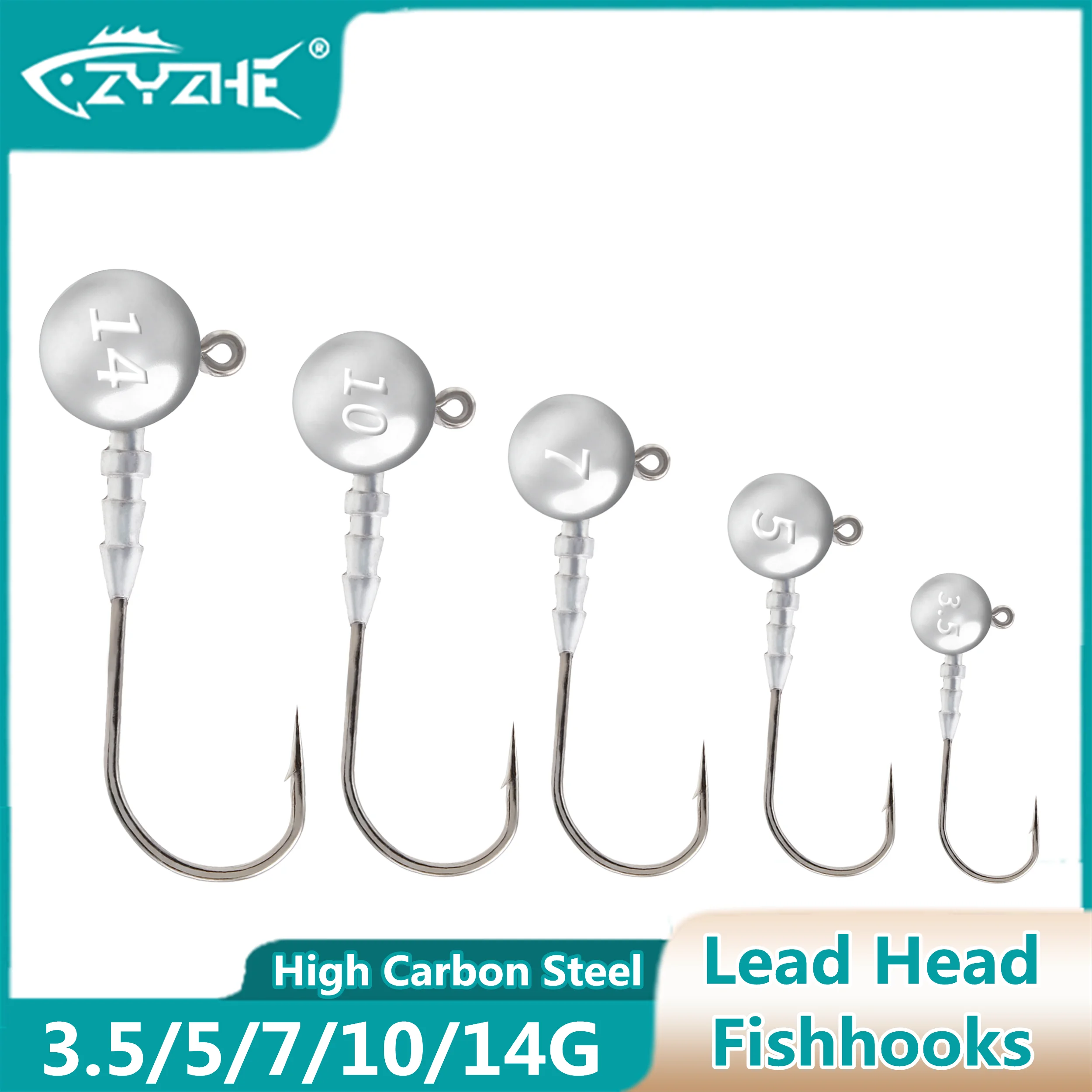 ZYZ-anzuelos de pesca con cabeza plomada, Señuelos de Pesca de acero de alto carbono, aparejos de pesca de lanzamiento largo, 3,5/5/7/10/14g