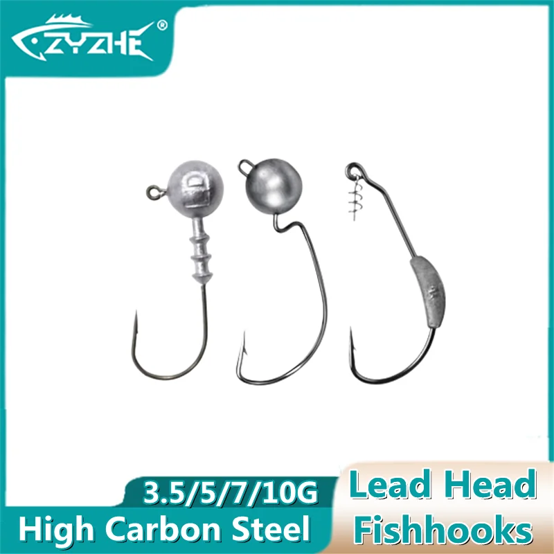 ZYZ-anzuelos de pesca con cabeza de plomo, 3,5g, 5g, 7g, 10g, anzuelos de manivela para señuelos blandos, accesorios de pesca, aparejos