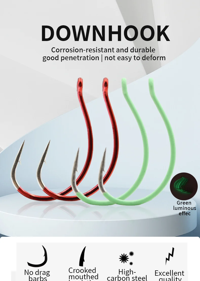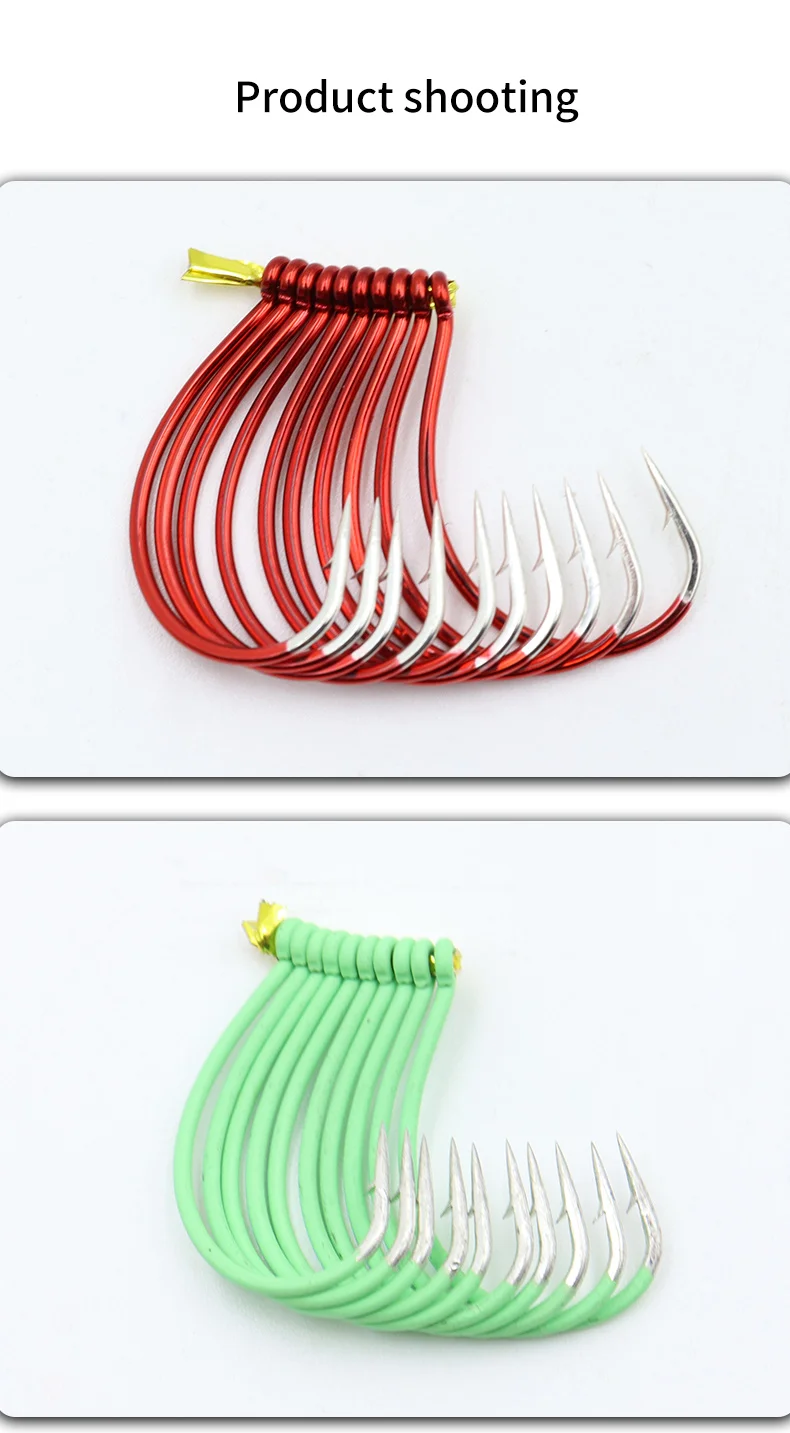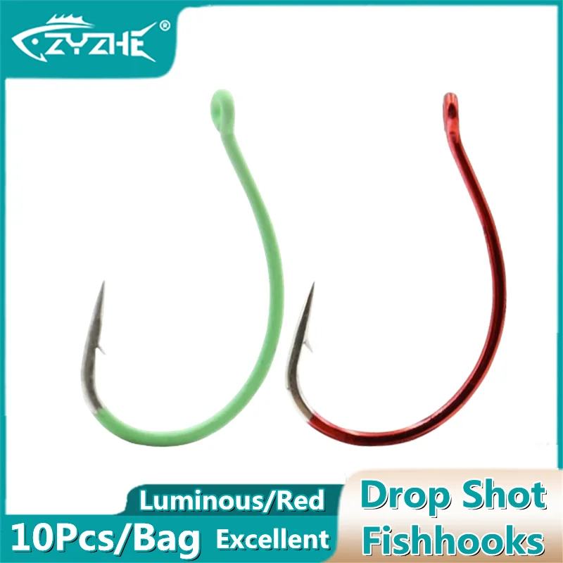 ZYZ-anzuelos de pesca de tiro caído, accesorios de pesca, señuelo suave, acero de alto carbono, manivela luminosa, púas, 10 unids/lote por bolsa