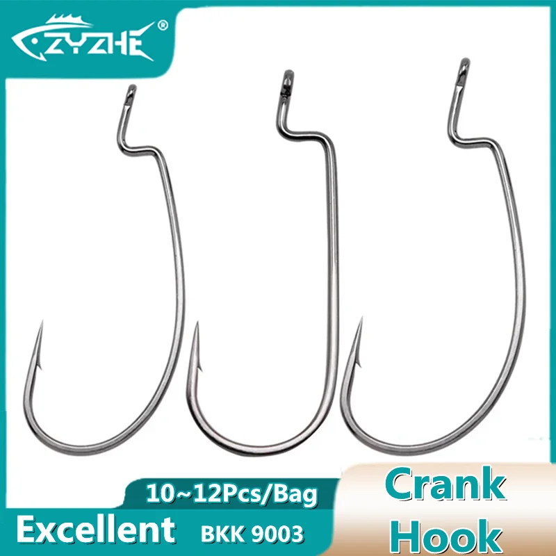 ZYZ-anzuelos texanos de acero de alto carbono, aparejos de Pesca suaves, con manivela Bkk, 10-12 unids/lote por bolsa