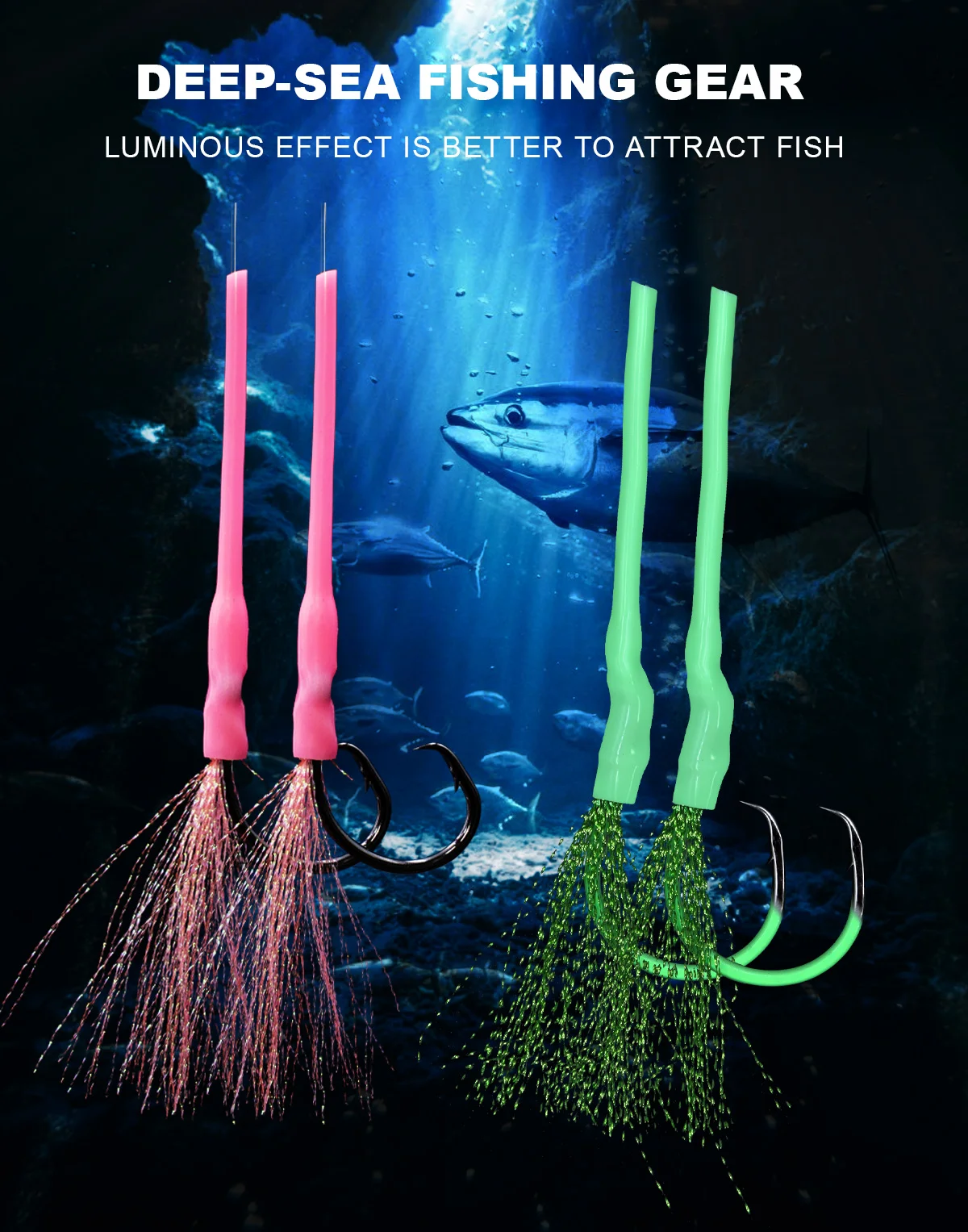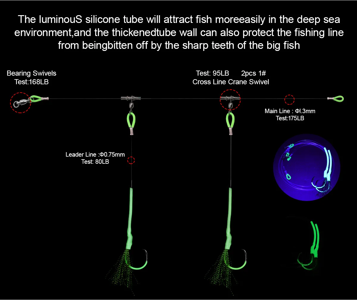 ZYZ-aparejos de pesca de aguas profundas, sedal de pesca fuerte con tubo luminoso, gancho circular negro, aparejos de pesca de agua salada Ideal, 1 ud.