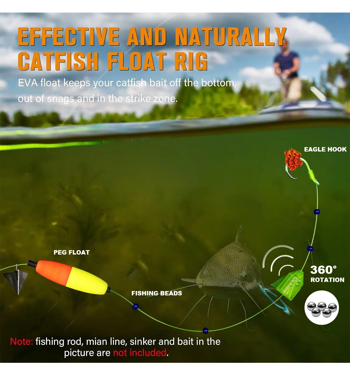 ZYZ aparejos de pesca de bagre con ganchos circulares luminosos, taladro de cobre Santee, indicador de campana de flotador de espuma de corcho, aparejos de flotación de pez gato, 1PC