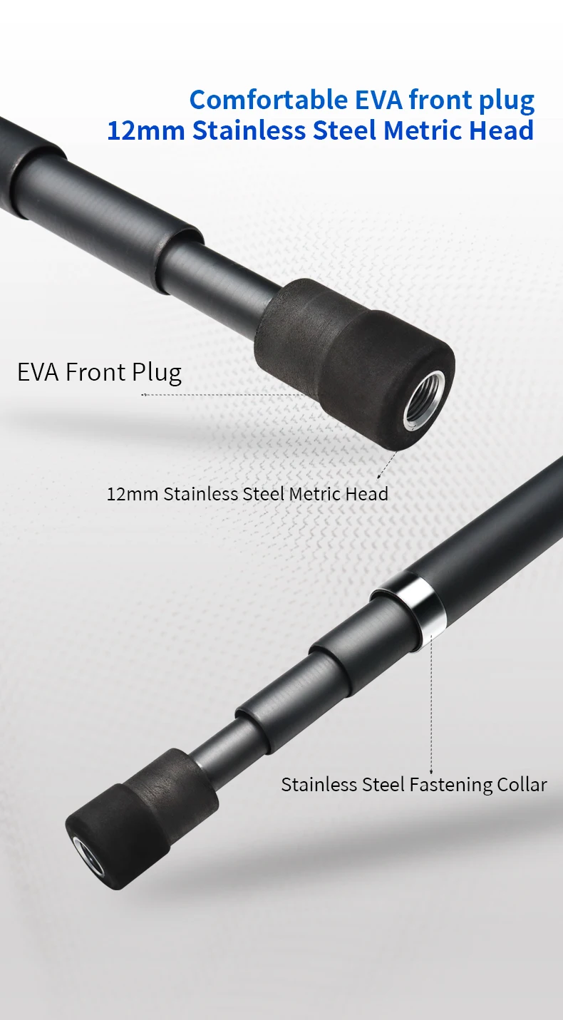 2. Comfortable EVA front plug, 12mm stainless steel metric head.