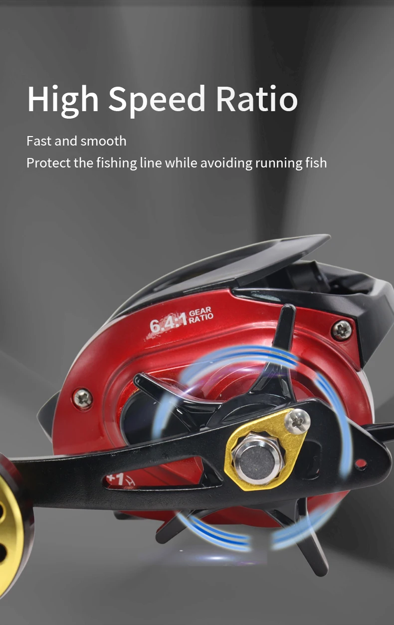1.6.4:1 relación de alta velocidad, rápida y suave sin resistencia, protege la línea mientras evita que los peces se escapen.