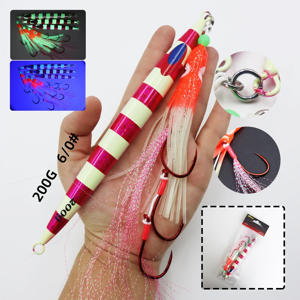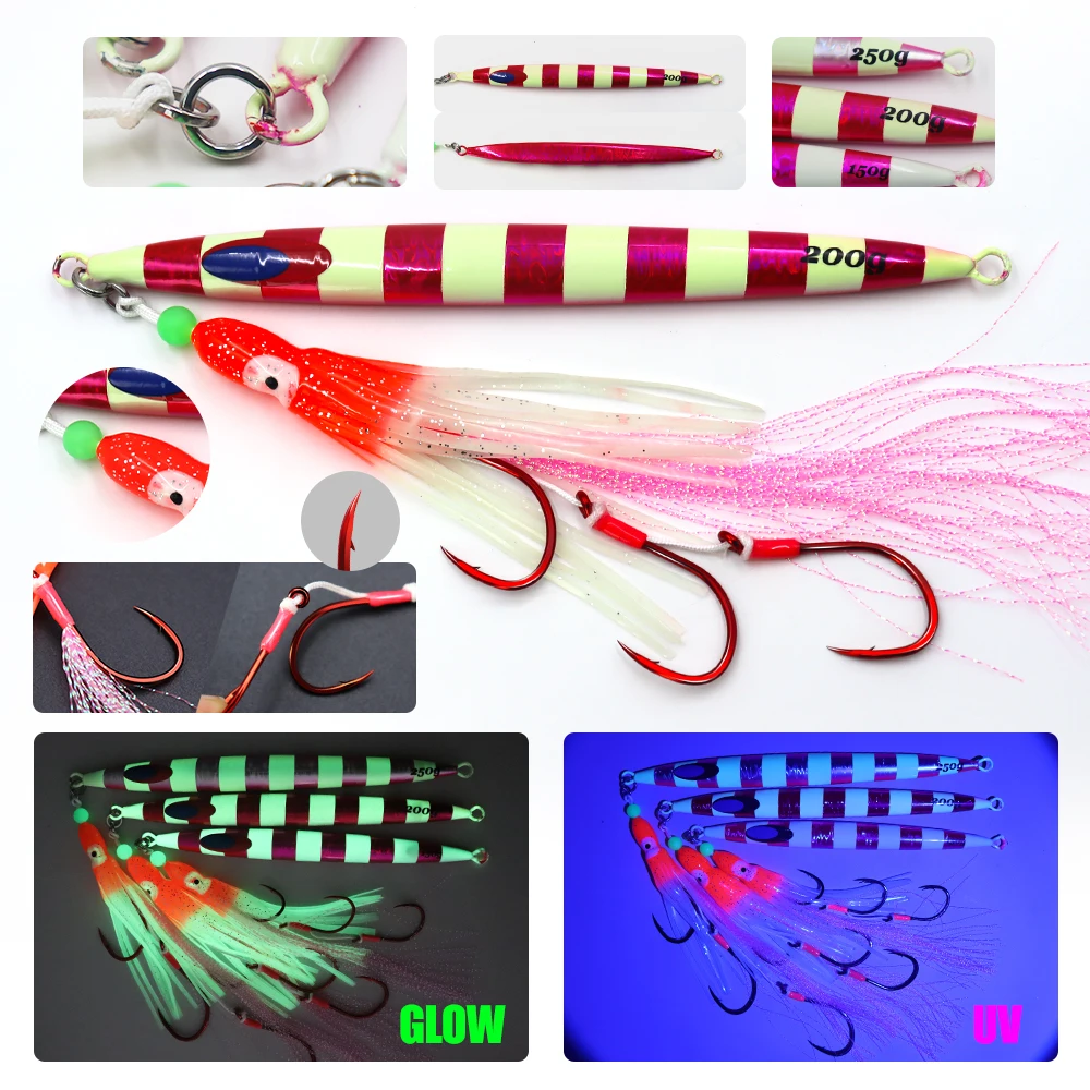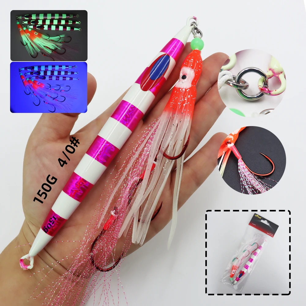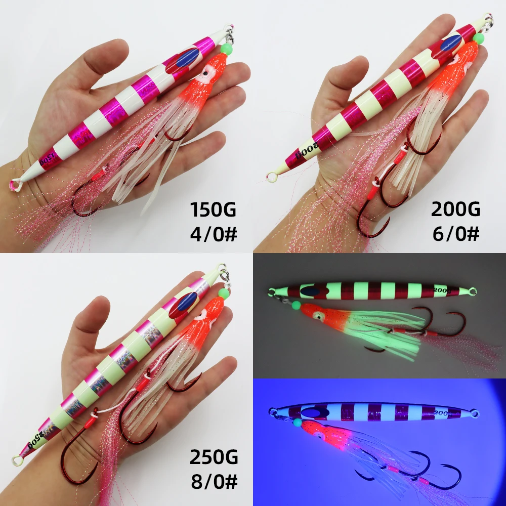 ZYZ-cebo tipo lápiz JIG para pesca en el mar, anzuelo luminoso de pulpo suave, anzuelos de cuerda, 150/200/250G, Fakebait de pesca en barco, 1 ud.