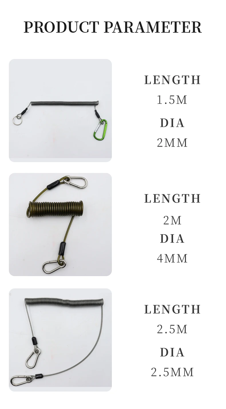 ZYZ cuerda de retención de alambre de acero, aparejo de pesca de mar de alta resistencia, herramienta antipérdida, alta elasticidad, autoestiramiento, cuerda anticaída