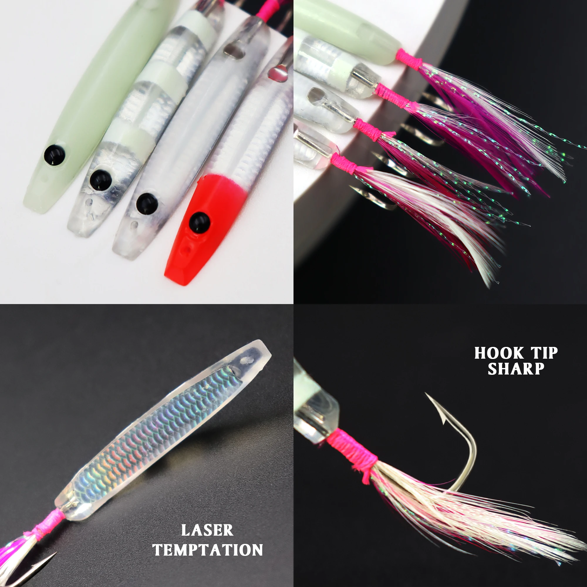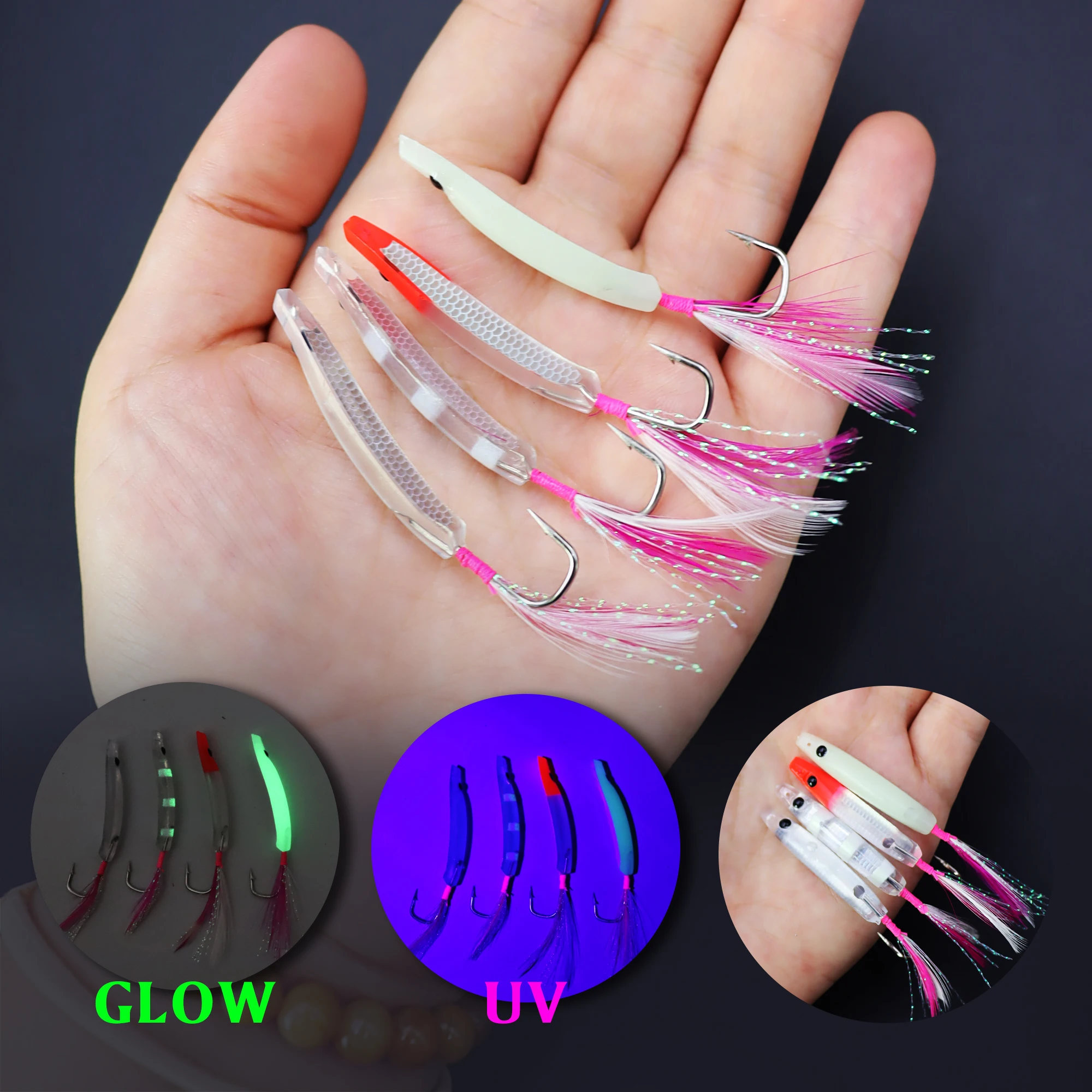 ZYZ-ganchos de cuerno de arco para pesca con curricán, 2 uds., 4CM, plantilla de plumas brillantes, anzuelos a juego, cebo Topwater, aparejos de pesca de mar