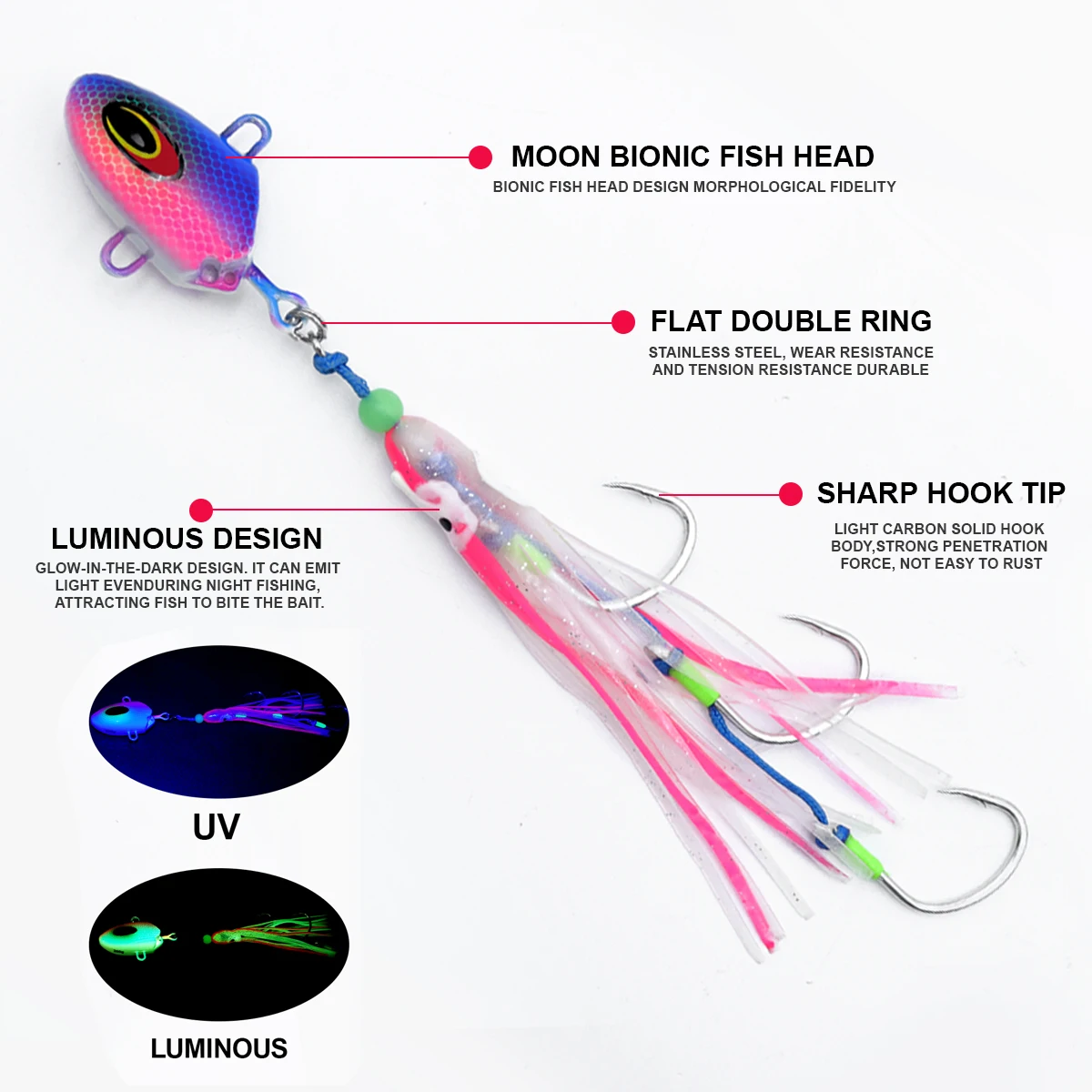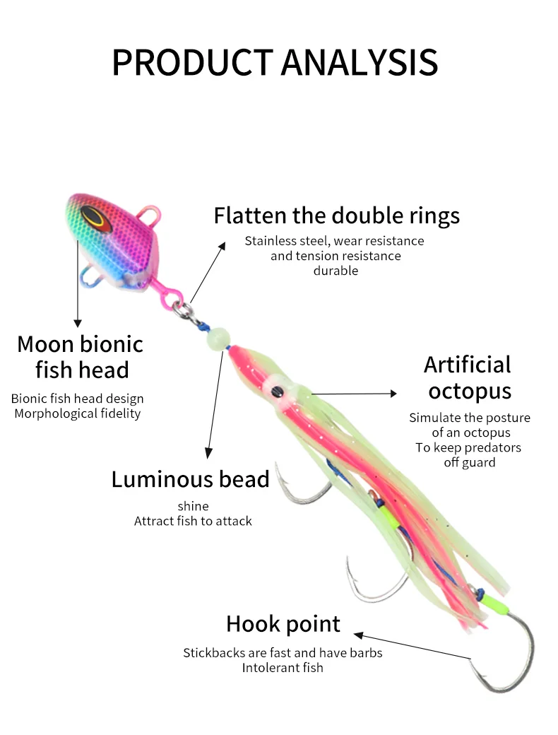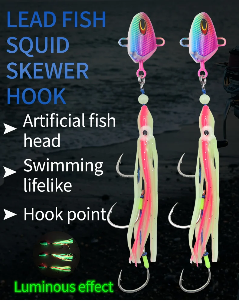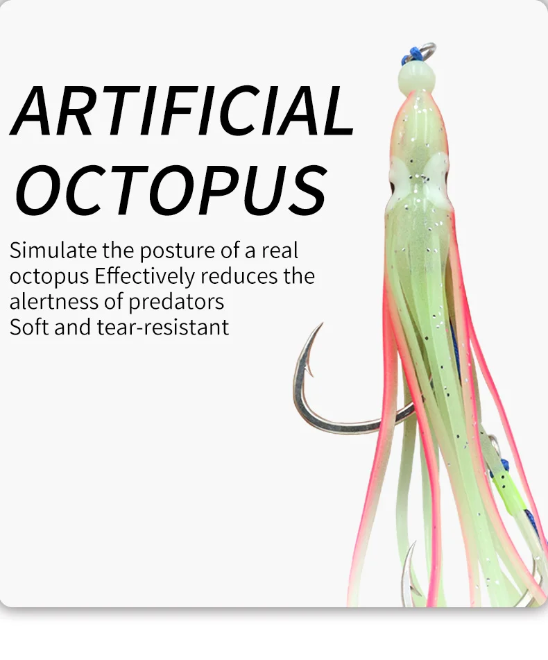 ZYZ JIG de pesca en el mar, 100/150/200G, cabeza de pez de plomo biónico + cebo suave de pulpo + anzuelos afilados, aparejos de anzuelos Ocean Baot
