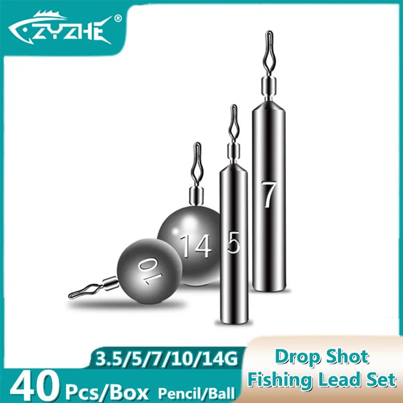 ZYZ-Juego de plomos de pesca, 40 unidades/caja, 3,5g, 5g, 7g, 10g, 14g, colgante, aparejo de pesca de agua dulce o mar