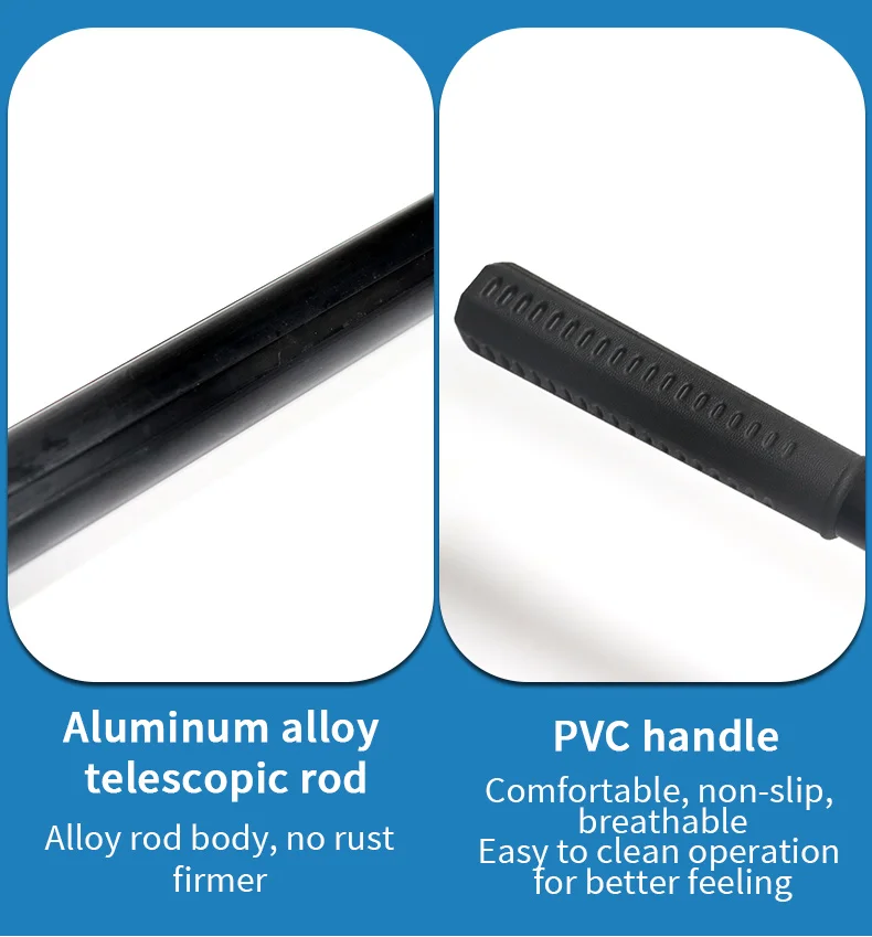 3. Poste telescópico de aleación de aluminio, cuerpo de poste de aleación, sin óxido, mango de PVC, cómodo y antideslizante, transpirable y más sólido, fácil de limpiar.