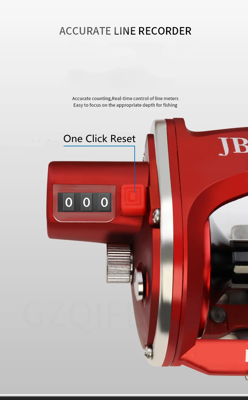 1. Marcador de línea preciso, conteo preciso, captura en tiempo real del número de metros de línea, fácil de enfocar en la profundidad de pesca correspondiente