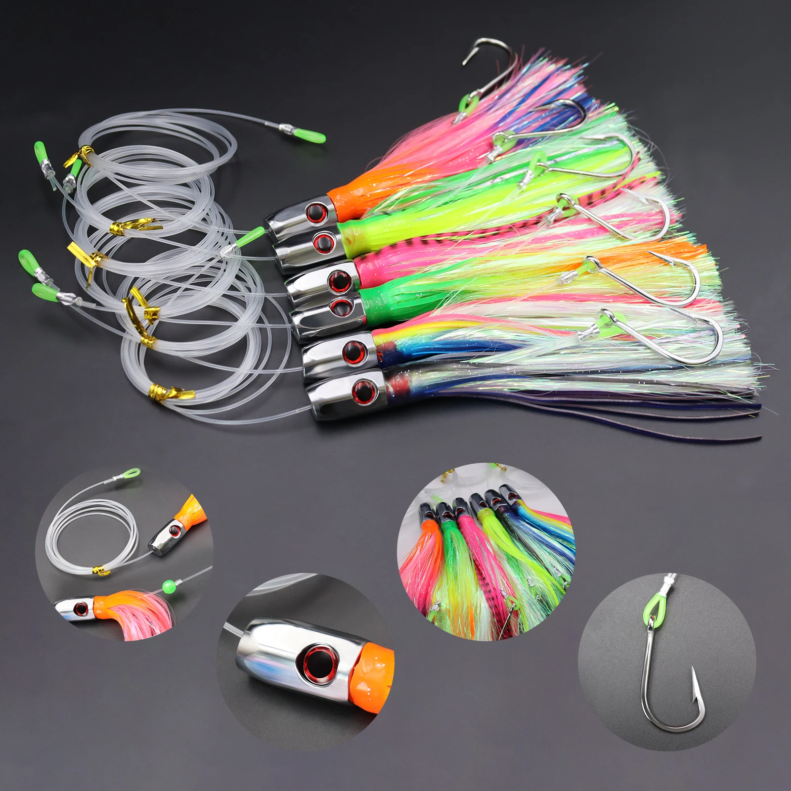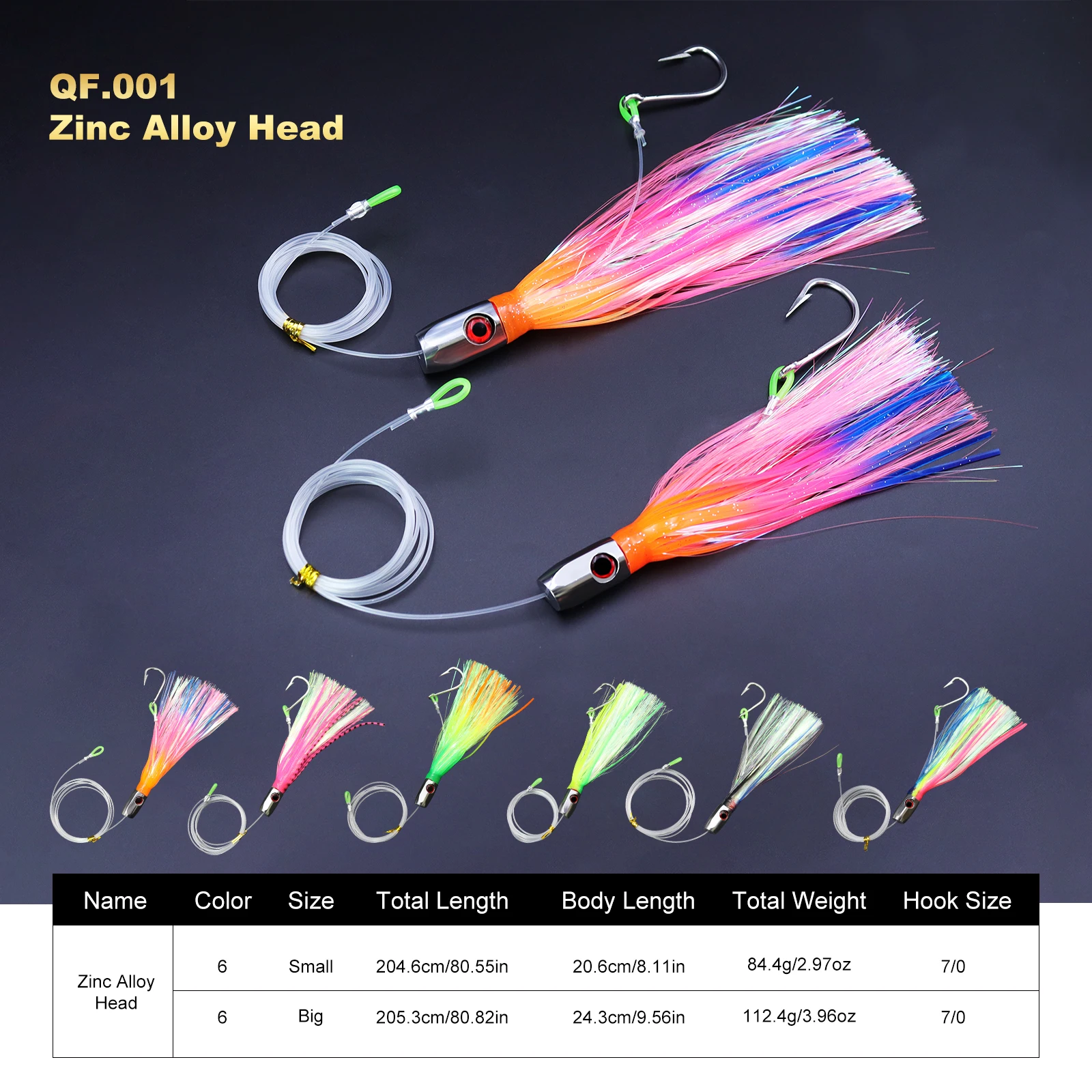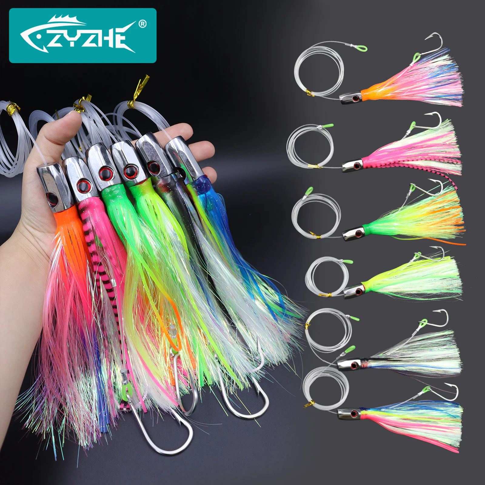 ZYZ-señuelo de calamar y pulpo, falda suave, talla S/L, cabeza de Metal aparejada, señuelo de atún para curricán, juego grande, señuelo de pesca con línea y anzuelo afilado