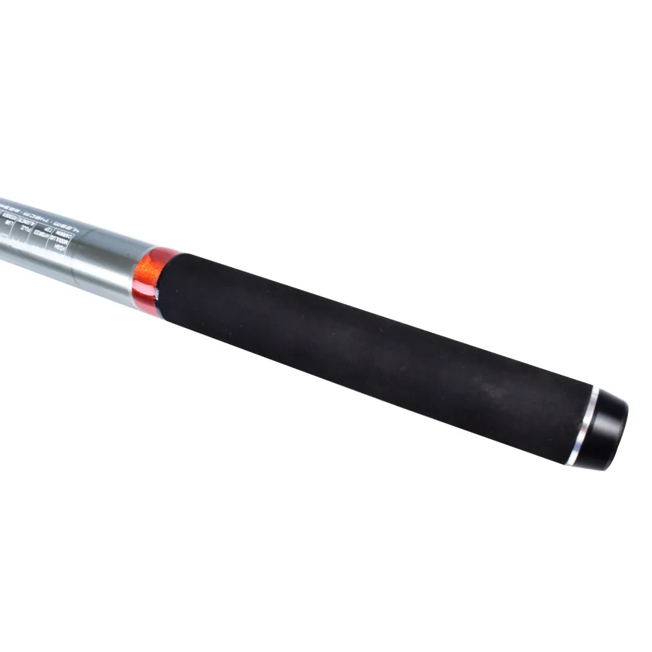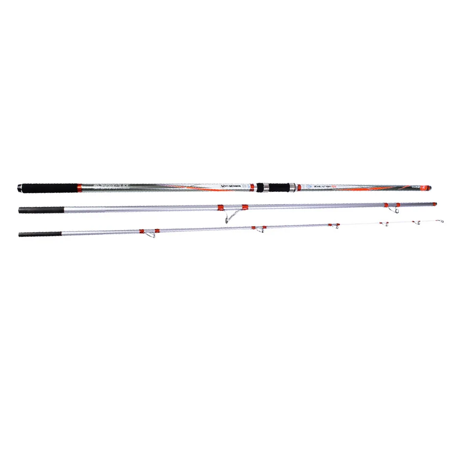 La varilla está hecha 100% de fibra de alto carbono y reforzada con tela K.Es adecuado para la pesca de larga distancia en todo tipo de aguas difíciles.Especialmente diseñado para todas las lanzamientos en alta mar. Estructura de construcción de fibra de carbono pura de 8 pisos, cuerpo de varilla súper resistente.300 g es el peso de fundición seguro, aunque solo se muestra entre 100 y 250 g en el embalaje.