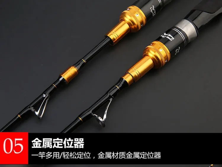 Caña de pescar telescópica de 1,5 M-2,1 M, caña de pescar giratoria portátil de carbono para barco, agua salada, agua dulce, Surfcasting, caña de Baitcasting