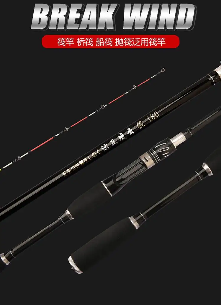 ZZ101 BREAK WIND Bridge Boat Ice Raft caña de pescar, punta de fibra de vidrio, 2 secciones, punta de diámetro 0,7mm 1,5 m 1,8 m 2,1 m sin carretes con 2 puntas