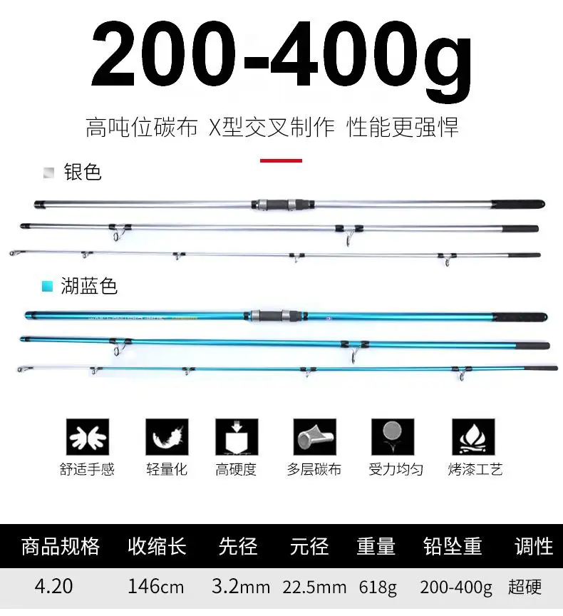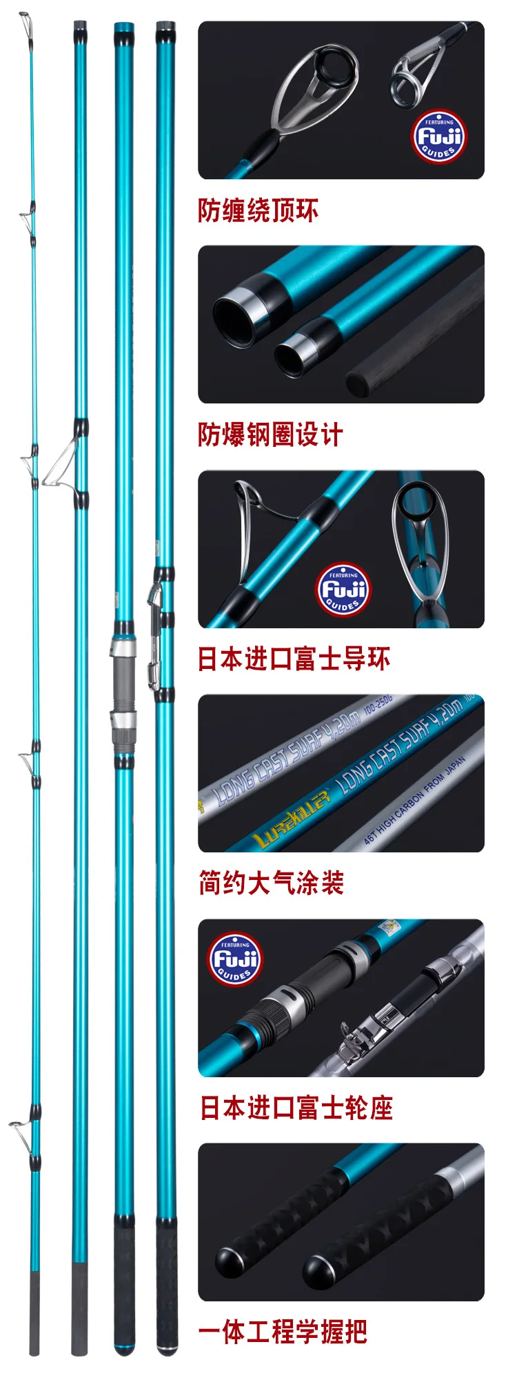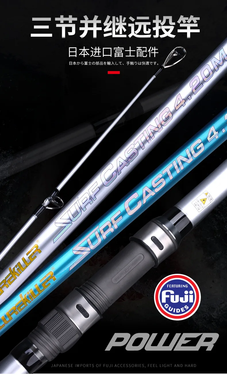 ZZ22 4,2 m Fuji KW o CR guías de línea Fuji DPS o NS-7 asiento de carrete 46T fibra de carbono SurfCasting Bait 100-250 g o 200-400 g