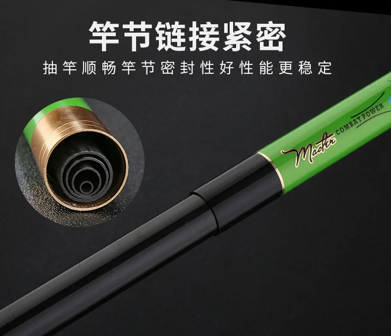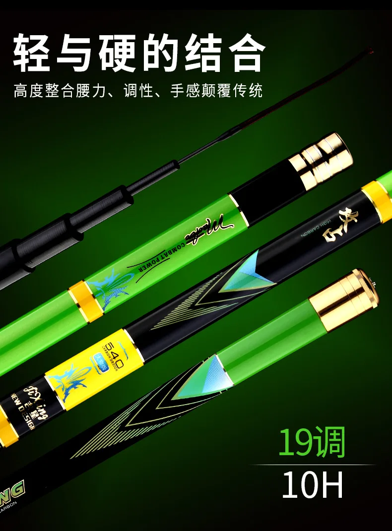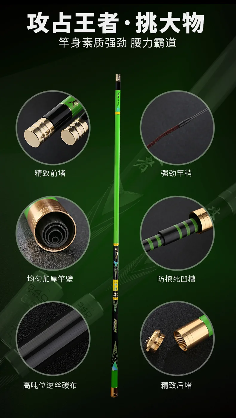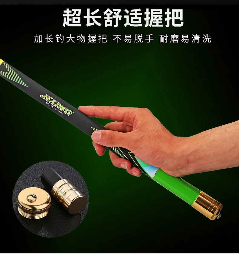 ZZ224 Green ATTACKER caña de pescar telescópica de pescado grande carga 5000G fibra de carbono súper dura 5,4 m 6,3 m 7,2 m 8,1 m y 9 M con 2 puntas