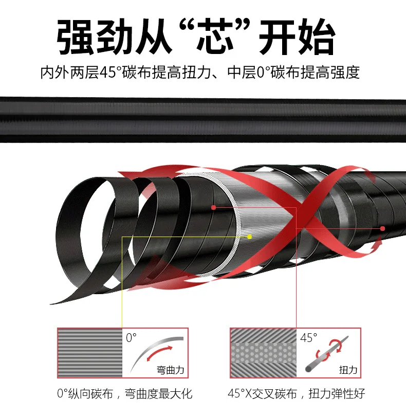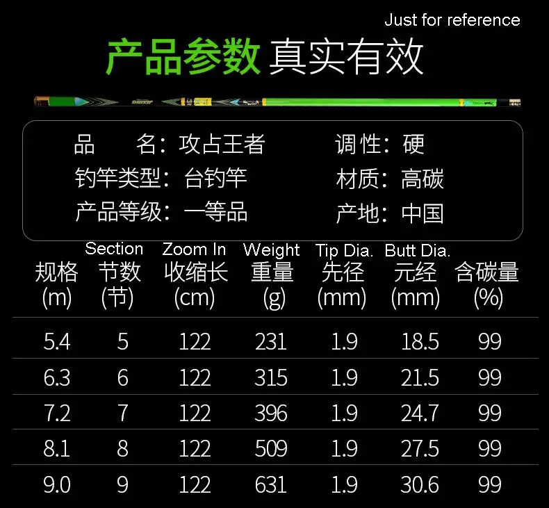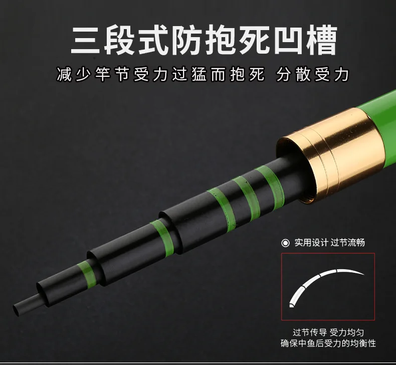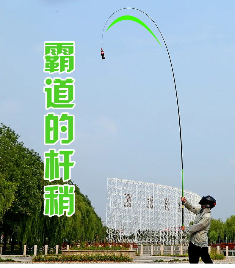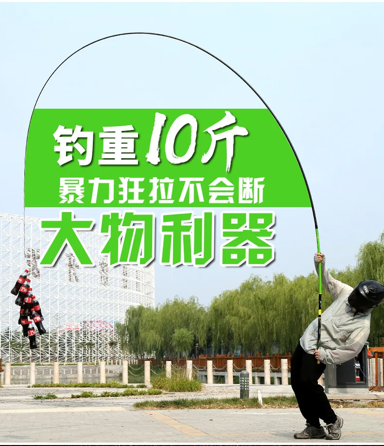 ZZ224 Green ATTACKER caña de pescar telescópica de pescado grande carga 5000G fibra de carbono súper dura 5,4 m 6,3 m 7,2 m 8,1 m y 9 M con 2 puntas