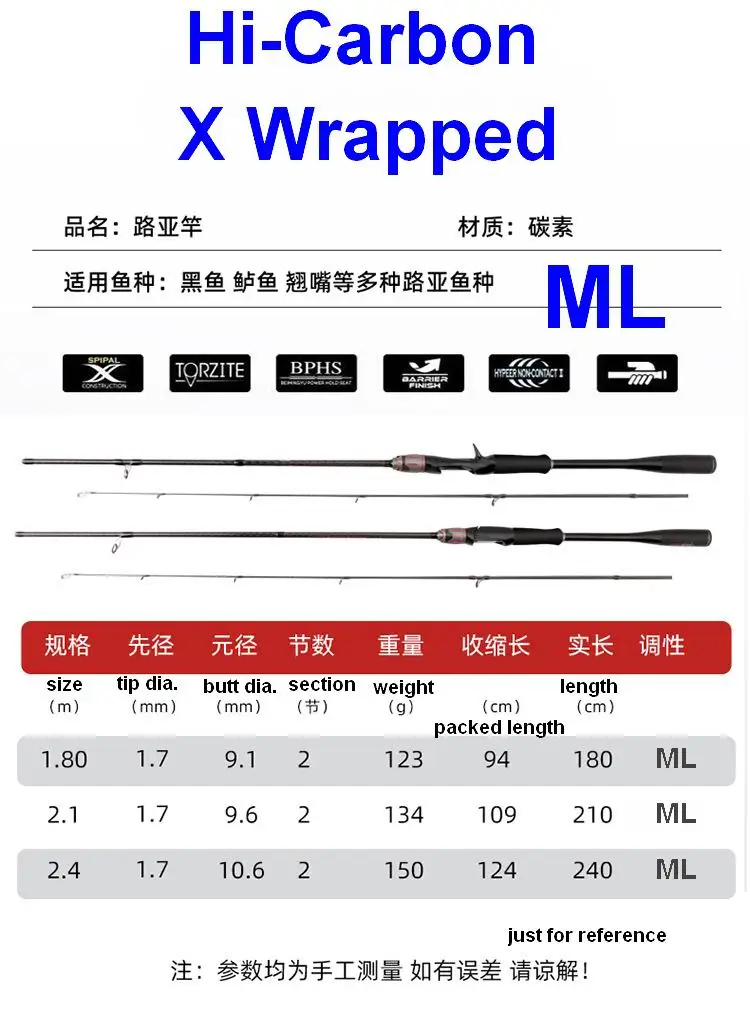 ZZ237 2500g ML punta aproximadamente 1,7mm potente señuelo caña de pescar giratoria X envuelto fibra de alto carbono 1,8 m 2,1 m 2,4 m