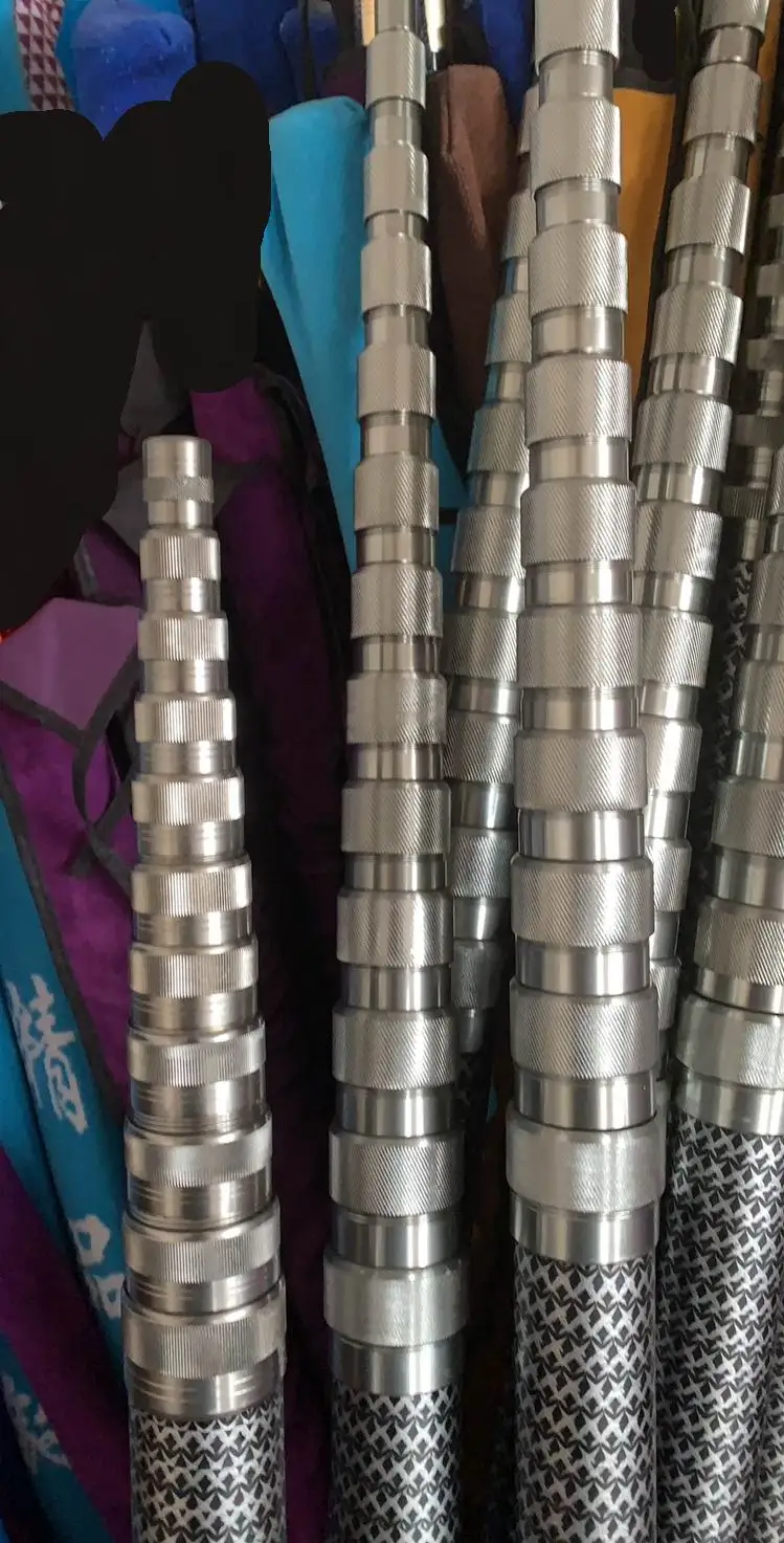 Soporte telescópico duradero para antena de radio. Excelente embalaje. Pero hay un inconveniente: pedí una longitud de 10m, que es la versión más larga, pero en estado completamente extendido, el soporte solo mide 8.7m de largo. Esto es un engaño chino con longitud. Aparentemente, todavía hay una brecha de altura de 10 metros para la persona.