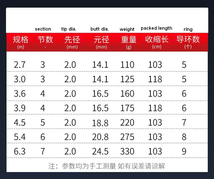 ZZ245 Geegan H Fast Rock Caña de pescar Punta de fibra de carbono 2 mm 2,7 m 3 m 3,6 m 3,9 m 4,5 m 5,4 m 6,3 m