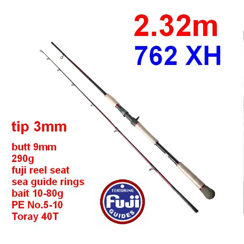 ZZ249 2,32 m 2,4 m 762 XH 290 g Punta 3 mm Butt 9 mm Cebo 10-80 g PE No. 5-10 Caña de pescar de alta fibra de carbono