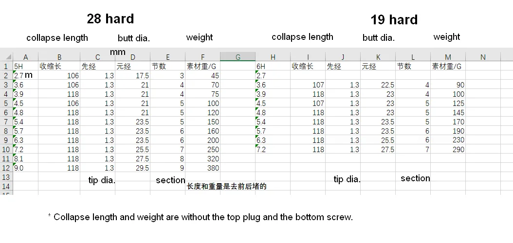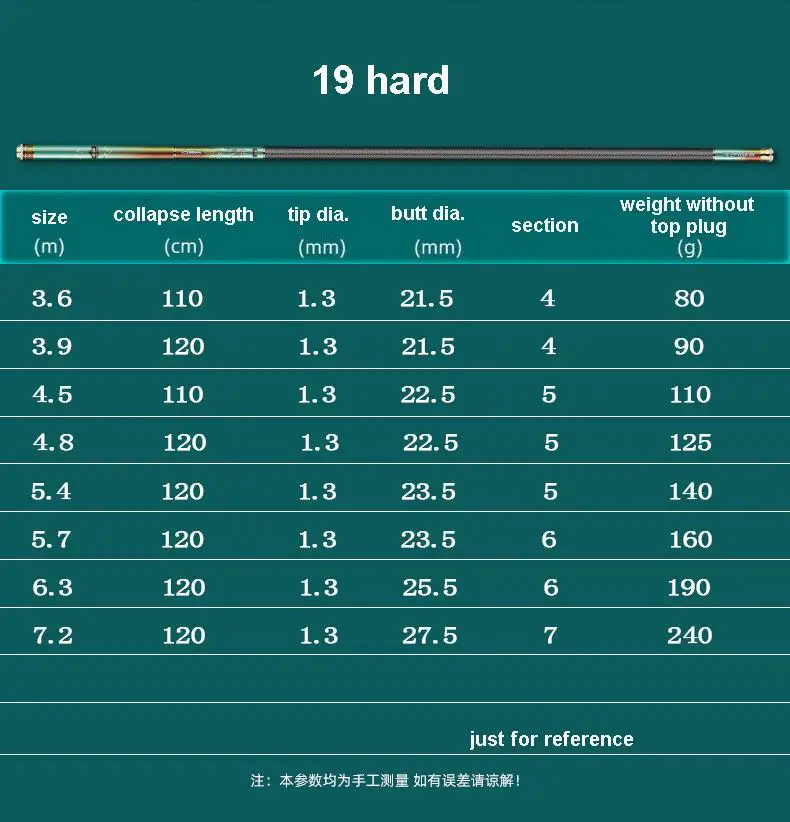 Tomé el 19 duro 5.4. El embalaje es bueno, la entrega es larga. Peso sin enchufe frontal 182 g. Varilla de repuesto incluida. Es un poco más rígido, me gustó más. La caña de pescar está bien, puedes llevártela.