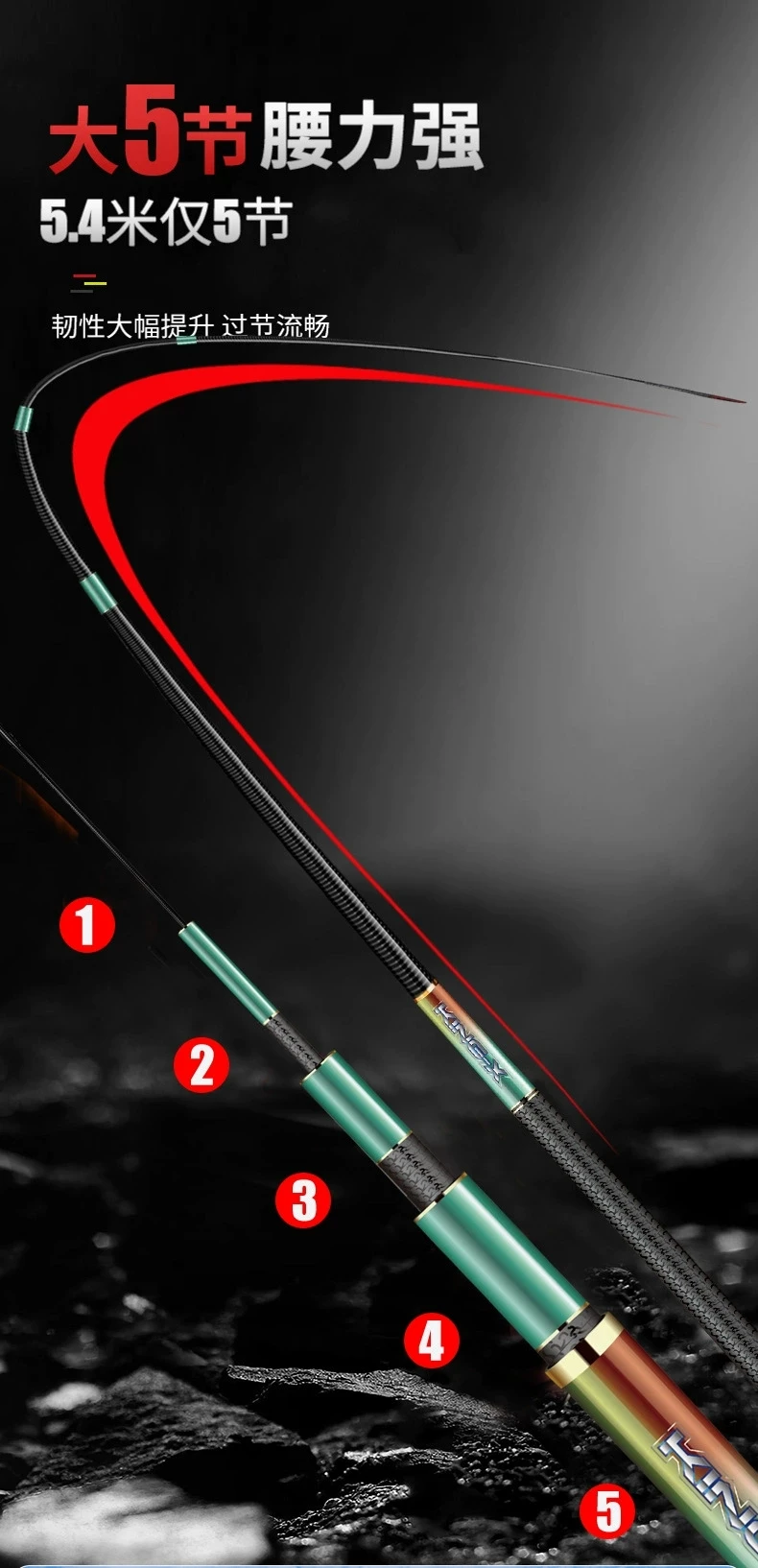 ZZ269 Caña de pescar King-X Fibra de carbono 2,7 m 3,6 m 3,9 m 4,5 m 4,8 m 5,4 m 5,7 m 6,3 m 7,2 m 8,1 m 9 m