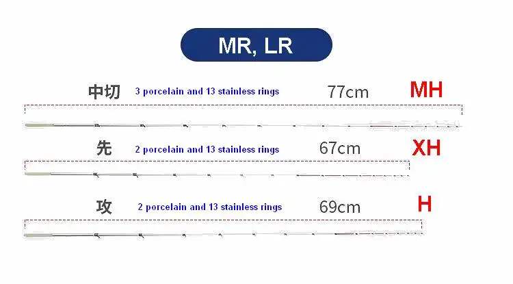 ZZ28 caña de pescar para balsa de hielo, anillos Fuji con MH 77cm, H 67cm, XH 69cm, 3 puntas de fibra de vidrio, buena calidad 0,32mm-0,36mm