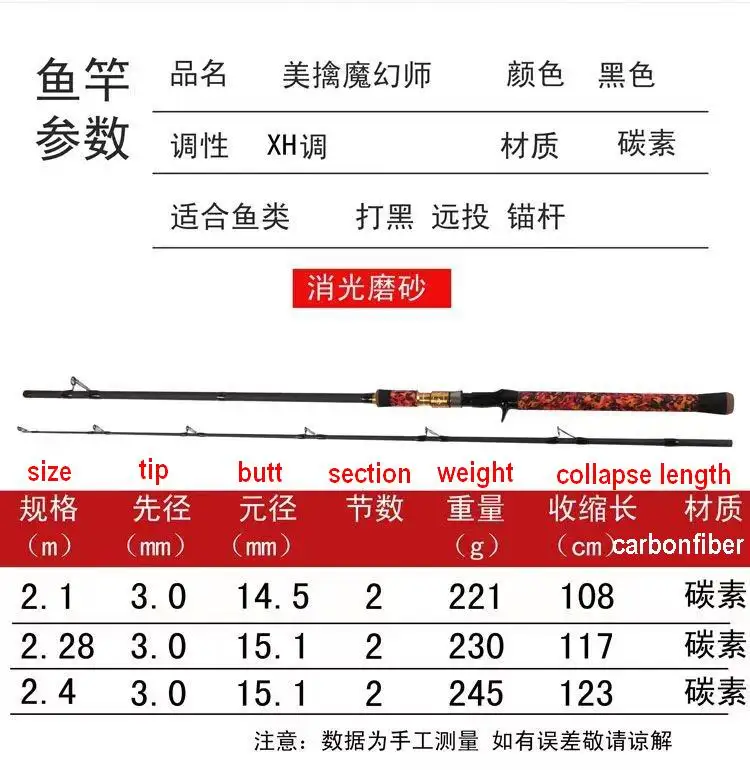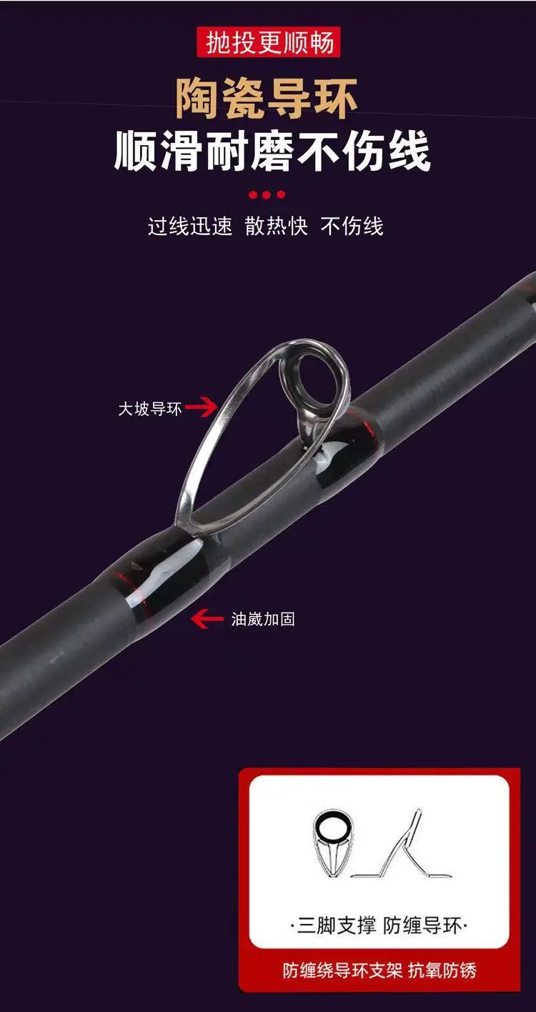 ZZ288 Punta XH Dia. Caña de pescar de 3 mm Fibra de carbono 2 secciones Mango de pistola 50-80 # Cebo de dureza 80-400g PE No. 3-8