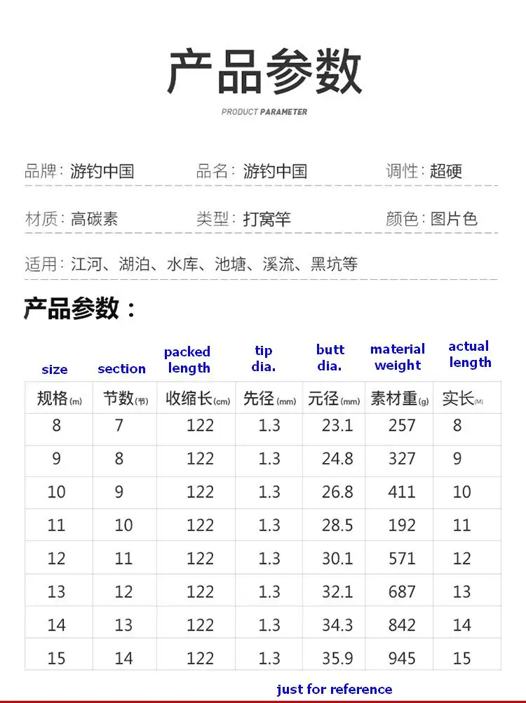 Buen embalaje, envío rápido. El vendedor era realmente útil, envió documentación adicional sobre el pago del IVA para ayudar en el despacho de aduana (envío FedEx). La descripción es correcta (el patrón en las secciones es diferente pero esto no es relevante) - ¡la información adicional importante es que la varilla tiene 2 consejos DIFERENTES! La punta corta y fuerte empaquetada en un tubo de plástico separado al lado de la varilla, reemplaza la punta original Y la segunda sección de la varilla. Con esta punta fuerte, la caña es mucho más rígida, tiene una acción más rápida, pero por otro lado es 120 cm más corta. Probablemente se hicieron la serie de imágenes que muestran la rectitud de la varilla con esta punta eléctrica, con la punta original (de dos secciones) la varilla se dobla ligeramente bajo su propio peso, pero no tanto que sería inutilizable. Datos medidos: la varilla nominalmente de 9 metros pesa 336 g sin el enchufe frontal y con la punta original, su longitud es de 880 cm, con la punta eléctrica pesa 334 g, su longitud es de 760 cm.