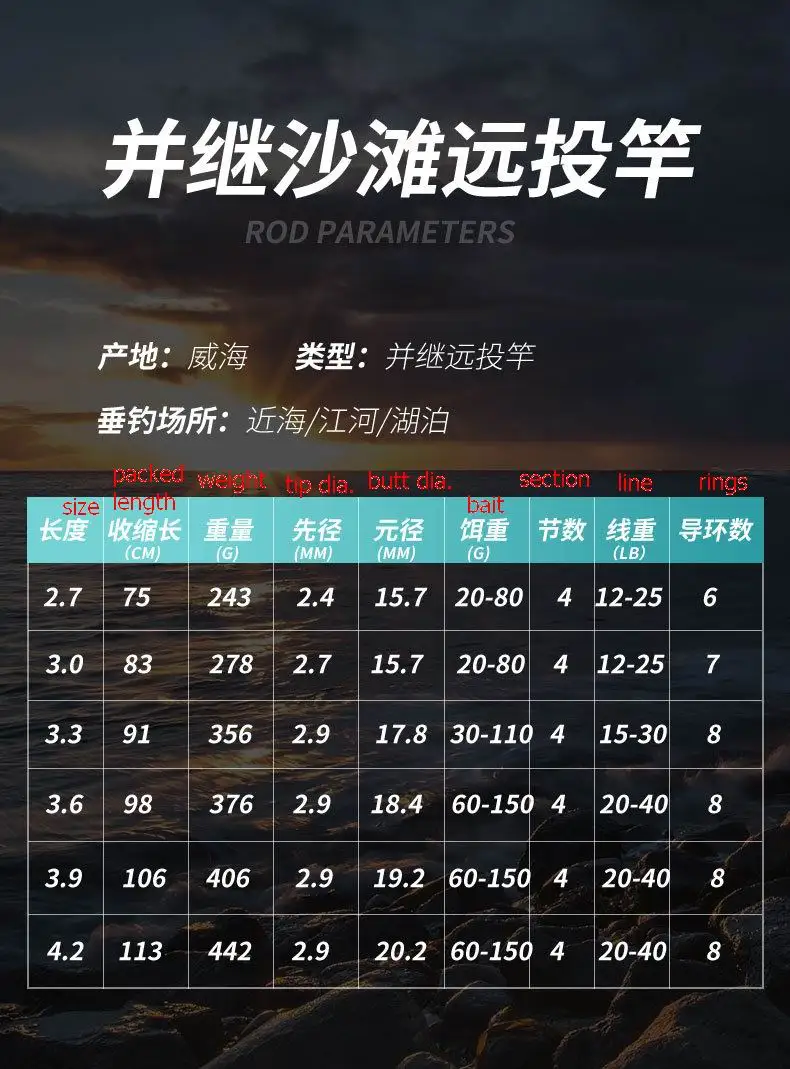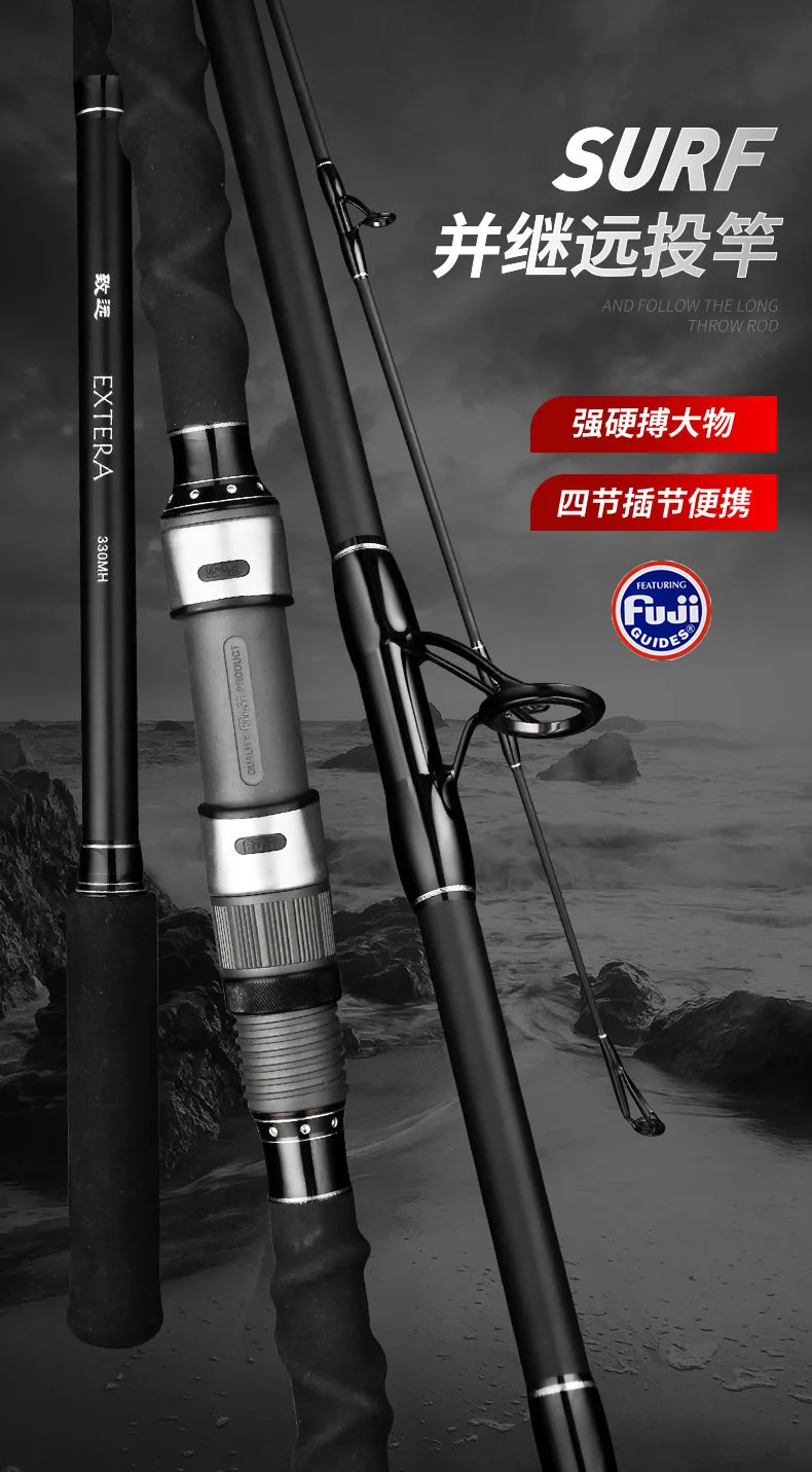 ZZ310 Fuji SurfCasting 2,7 m 3 m 3,3 m Diámetro de la punta. Caña de pescar de fibra de carbono de 2,9 mm, cebo con anillo MN, línea de 60-150 g, 20-40 libras.