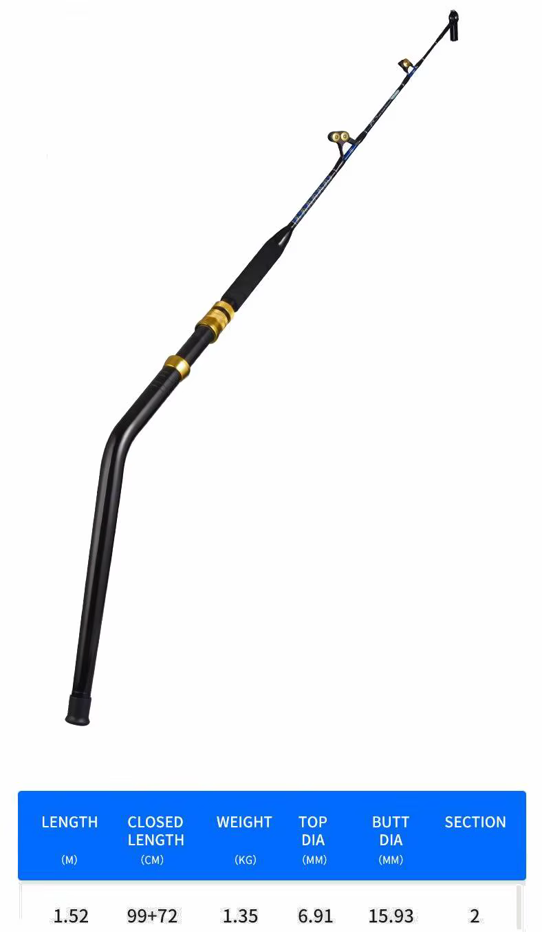 1,95 m y 2,1 m, 50-300 libras también están disponibles.