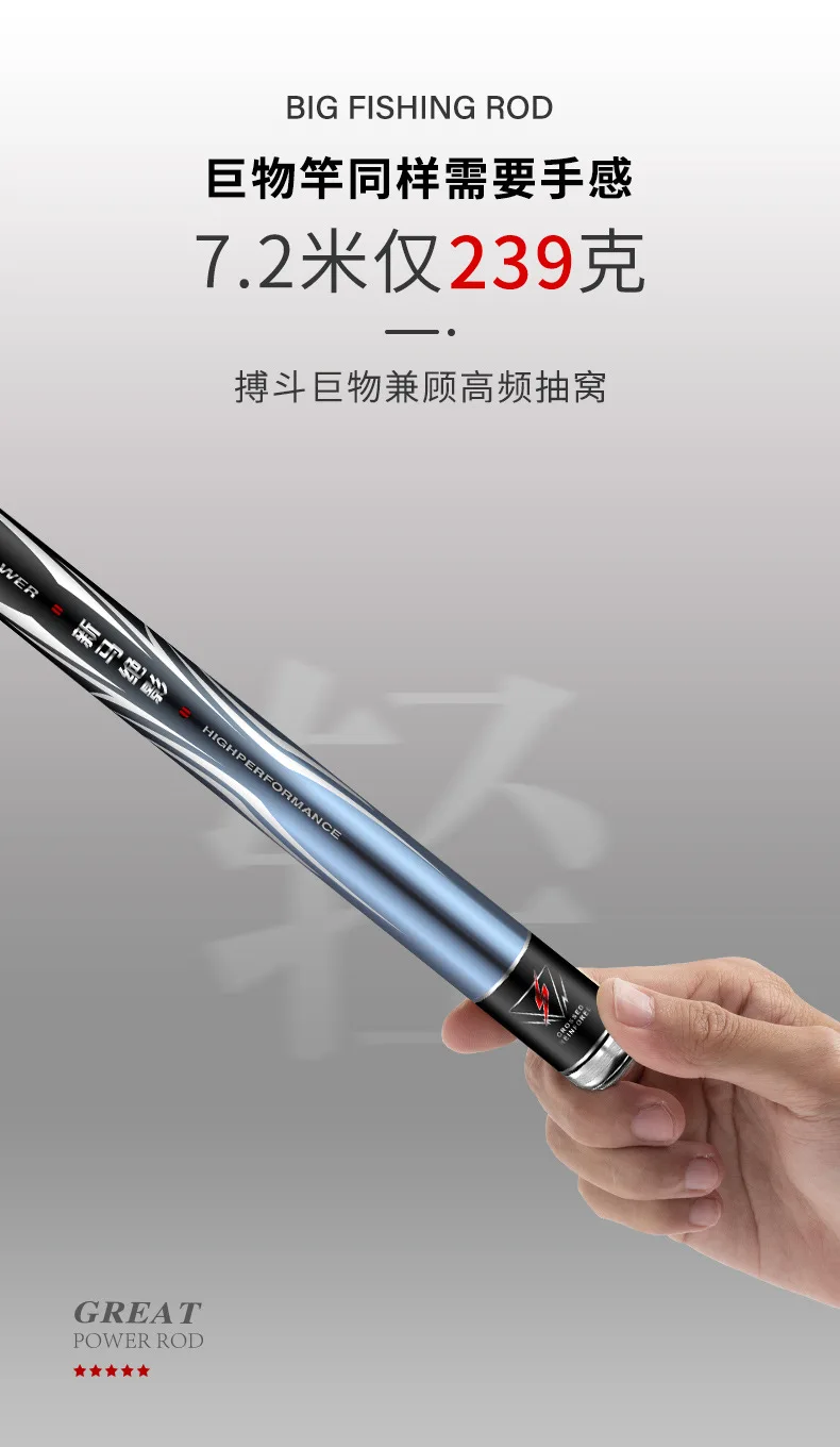 6H 6.6m Compra Ligero y el lanzamiento de cebo es muy natural. El anzuelo es de buena calidad y maneja la pesca de carpas sin esfuerzo. Lo recomiendo.