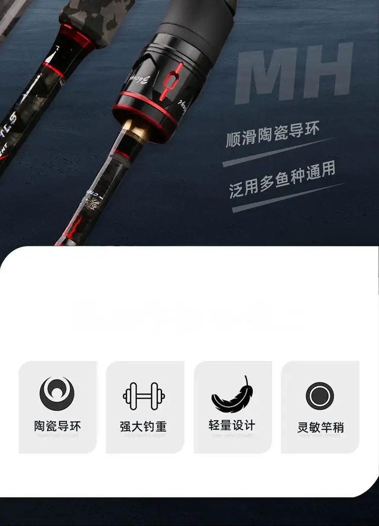 ZZ336 caña de pescar de fundición giratoria de nuevo diseño, rápida MH, 1,8 m, 2,1 m, 2,4 m, encendedor sensible, más fuerte, Punta envuelta en X, diámetro. 1,9mm