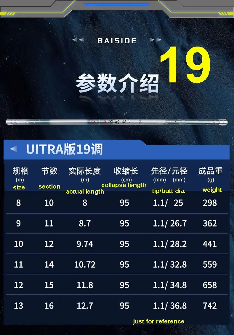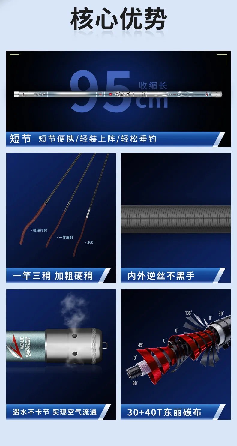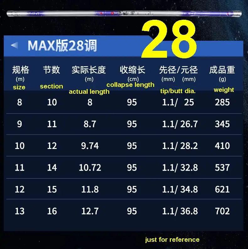 ZZ348B 95cm colapso ZZ348 nueva versión 8m 9m 10m 11m 12m 13m 28 19 caña de pescar dura superlarga fibra de alto carbono 3 puntas