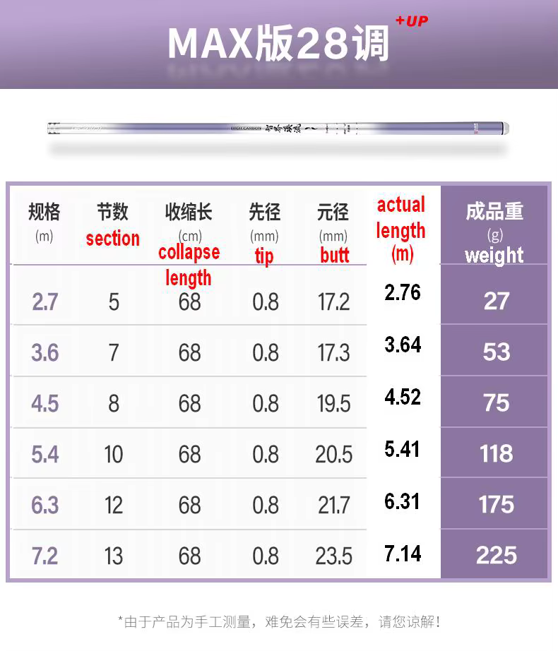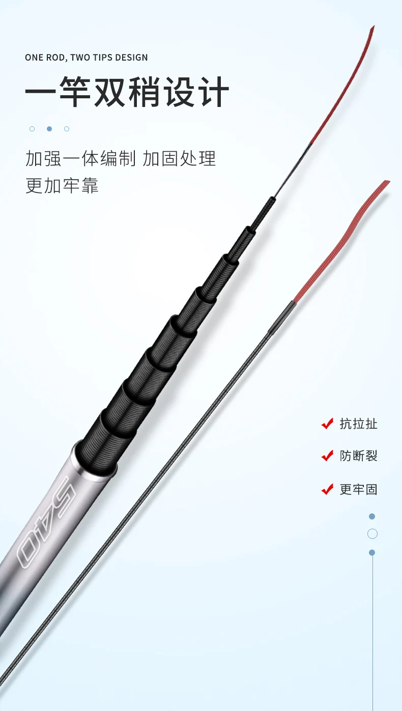 ZZ349A ZZ349 nueva versión 3,6 m 4,5 m 5,4 m 6,3 m 7,2 m 8,1 m portátil 68cm sección corta caña de pescar fibra de alto carbono 2 puntas punta 0,85mm