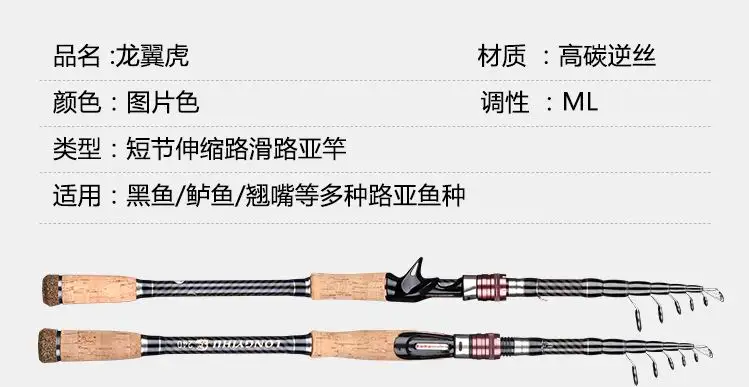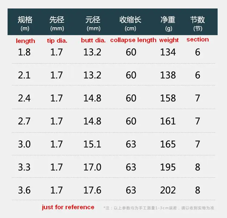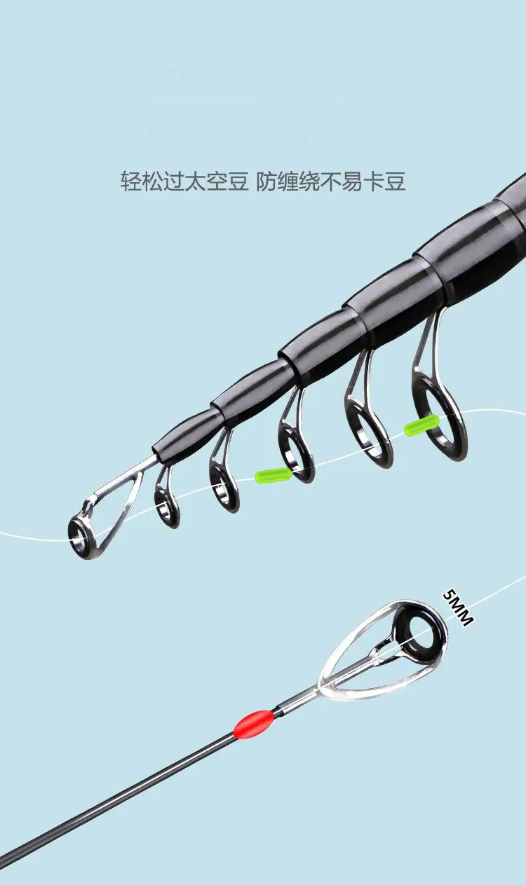 ZZ355 ML Diámetro de la punta. 1,7mm 63cm portátil 1,8 m 2,1 m 2,4 m 2,7 m 3m 3,3 m 3,6 m caña de pescar telescópica giratoria o fundida sin carrete
