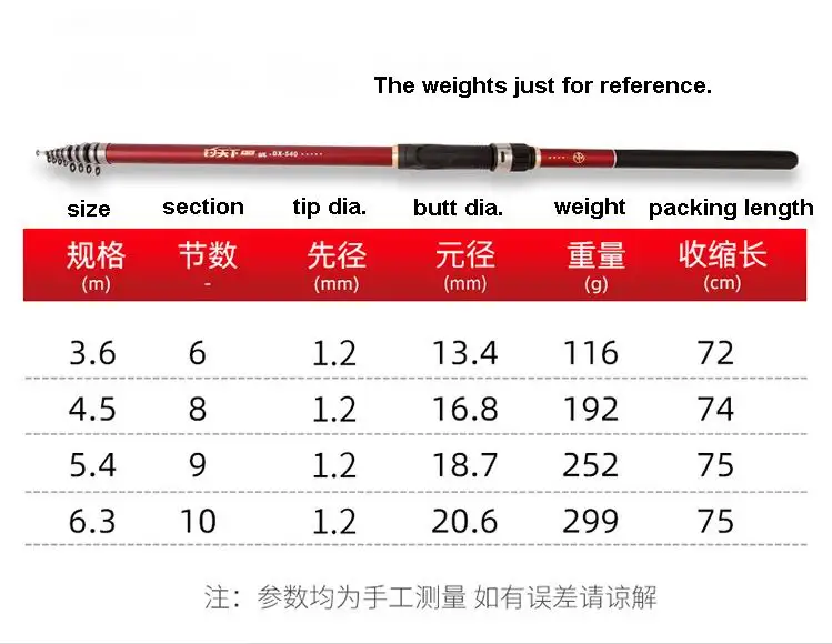 ZZ375 Geegan 74cm caña de pescar de sección corta fibra de carbono 3,6 m 4,5 m 5,4 m 6,3 m 3-360 3-450 3-540 3-630 plomo aproximadamente 12g sin carrete